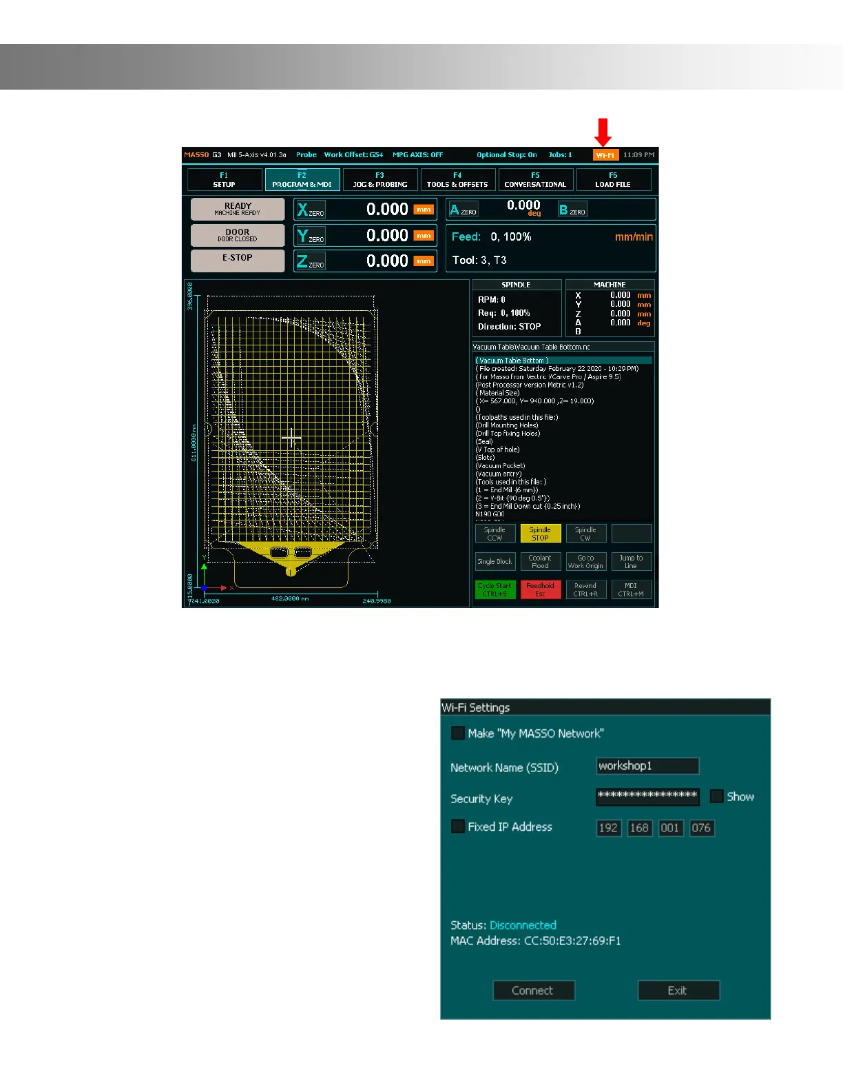 On the F2 - Program & MDI screen, click the Wi-Fi icon (Red Arrow)