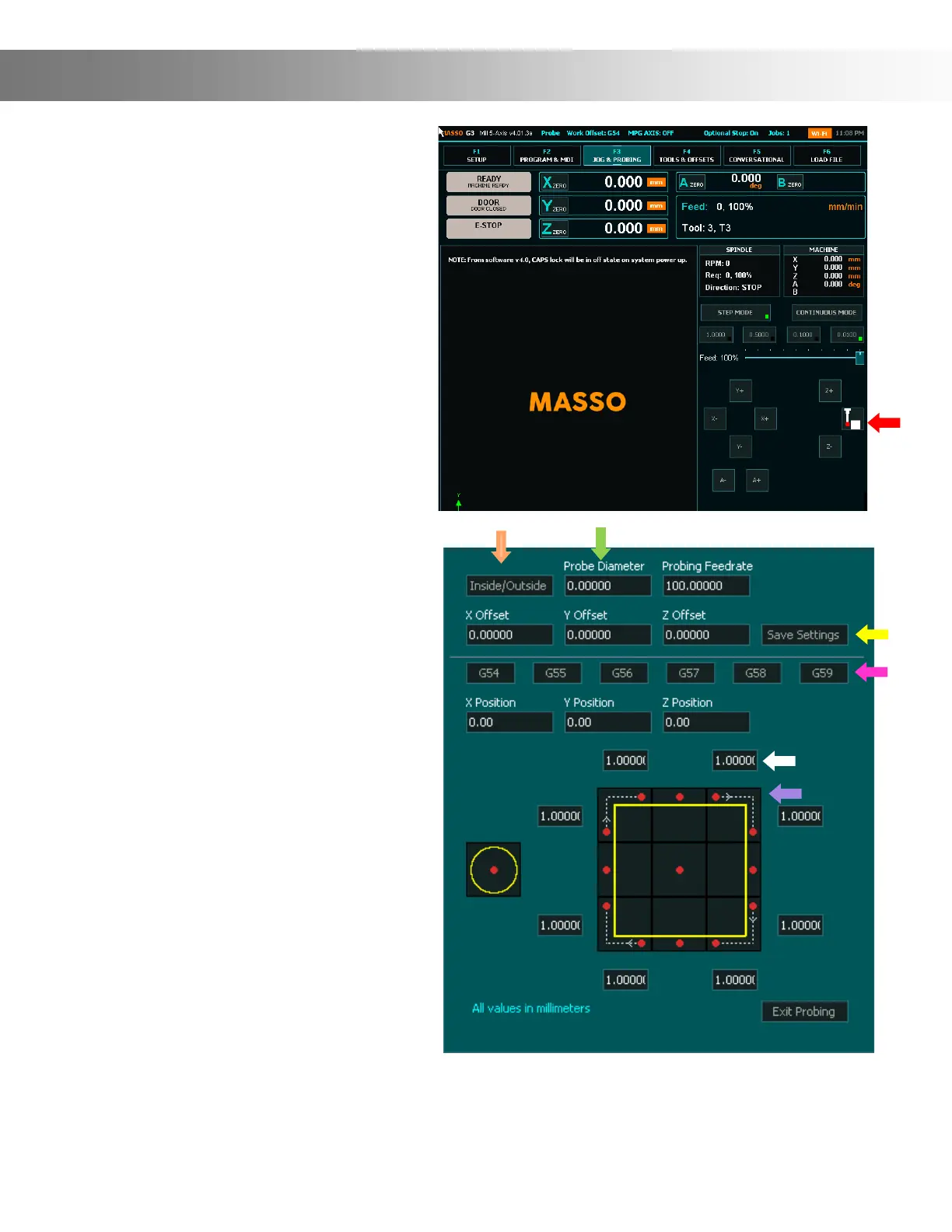 To initiate Probing tap the Probing button