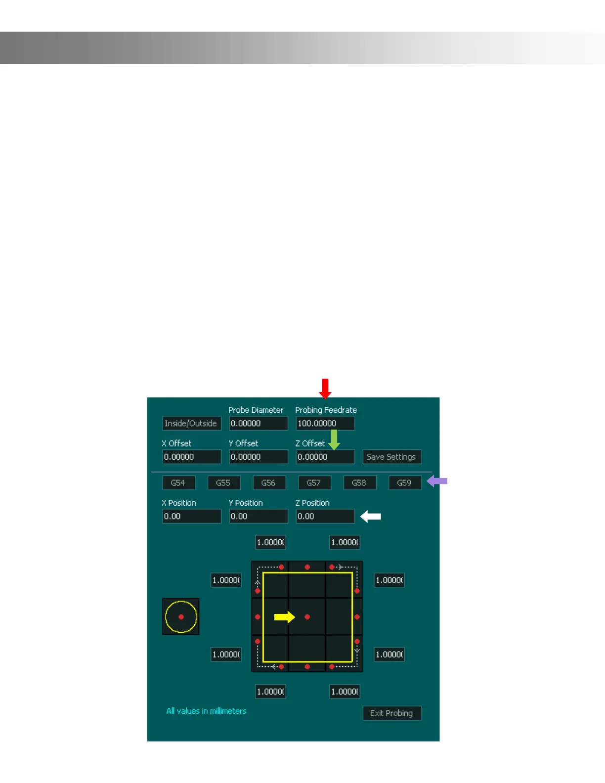 probing down at the rate specied in the Probing Feedrate box (Red Arrow)