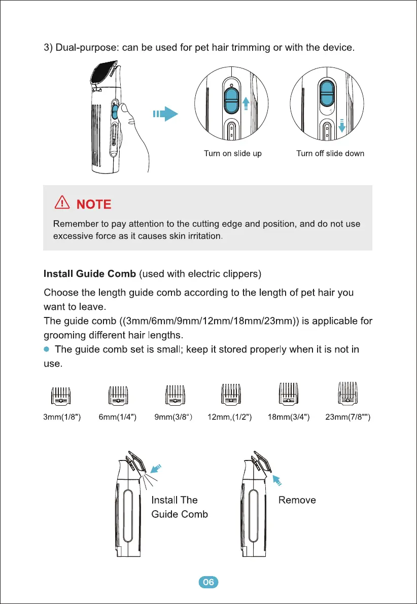 Choose the length guide comb according to the length of pet hair you
