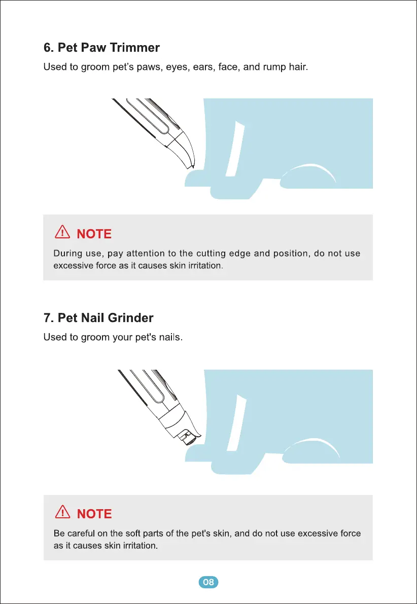 Be careful on the soft parts of the pet's skin, and do not use excessive force