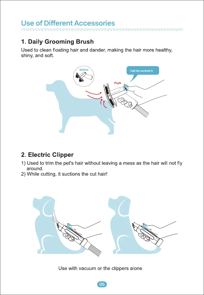 1) Used to trim the pet's hair without leaving a mess as the hair will not fly