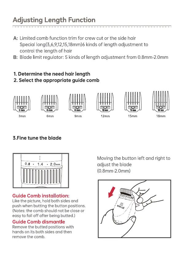 A: Limited comb function trim for crew cut or the side hair