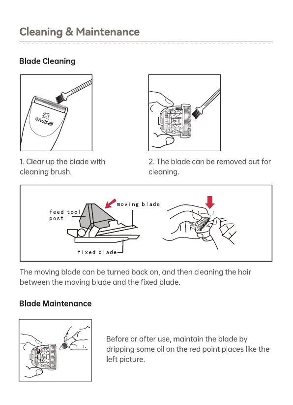 The moving blade can be turned back on, and then cleaning the hair