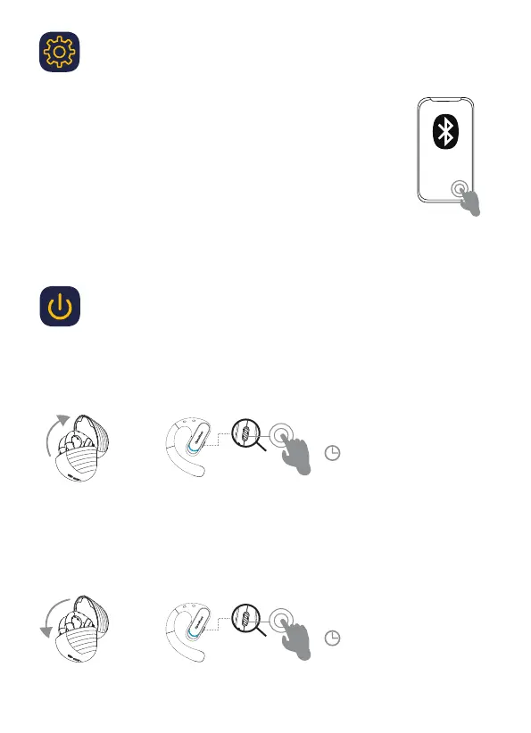 The earphones will be powered on automatically when the lid is opened, or press and hold the