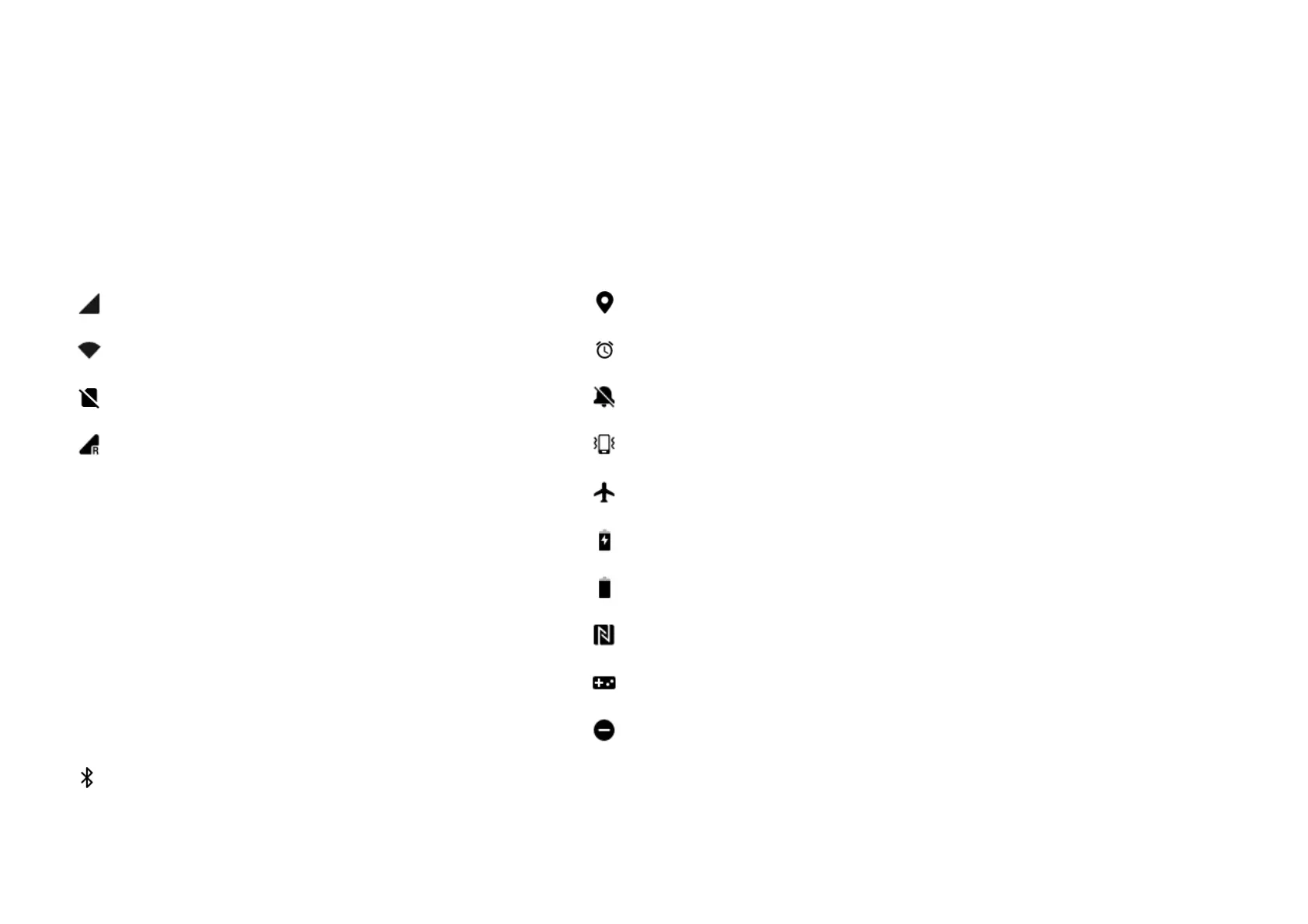 Status icons are displayed on the status bar at the top of the screen. The icons listed in the table
