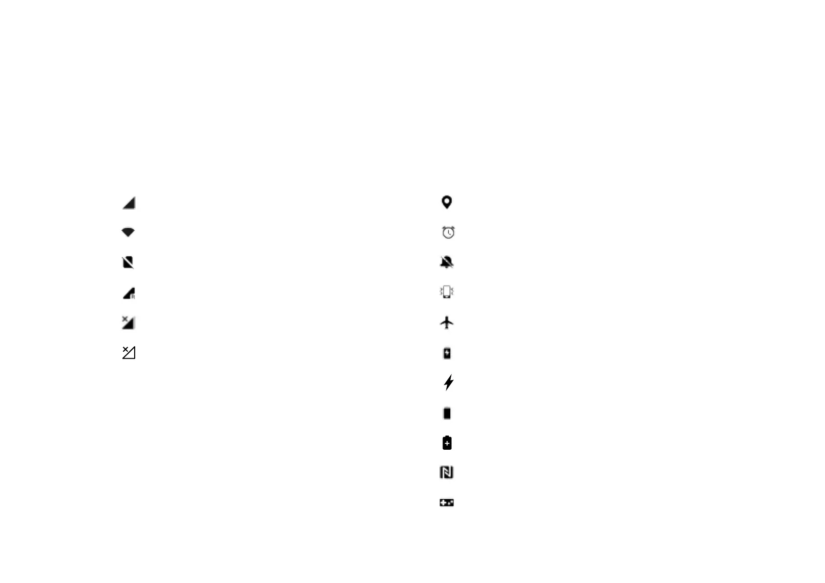 Status icons are displayed on the status bar at the top of the screen. The icons listed in the table