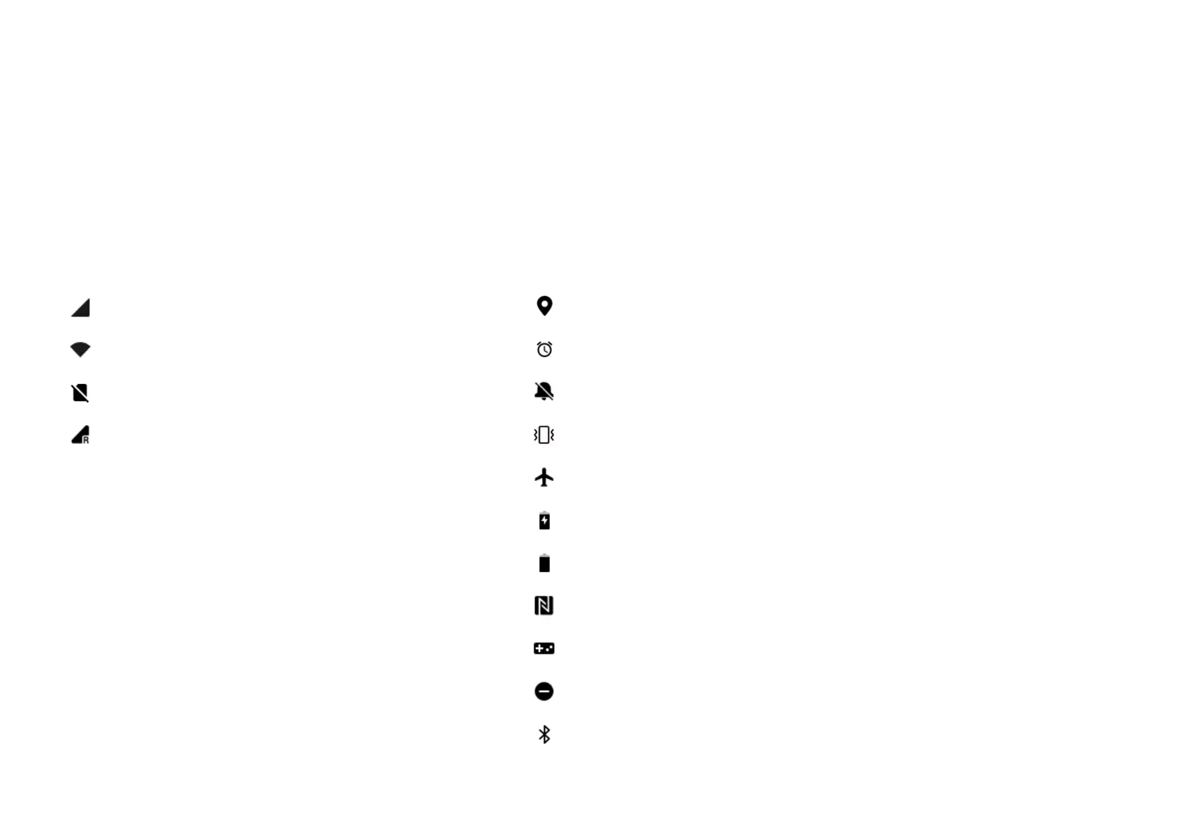 Status icons are displayed on the status bar at the top of the screen. The icons listed in the table