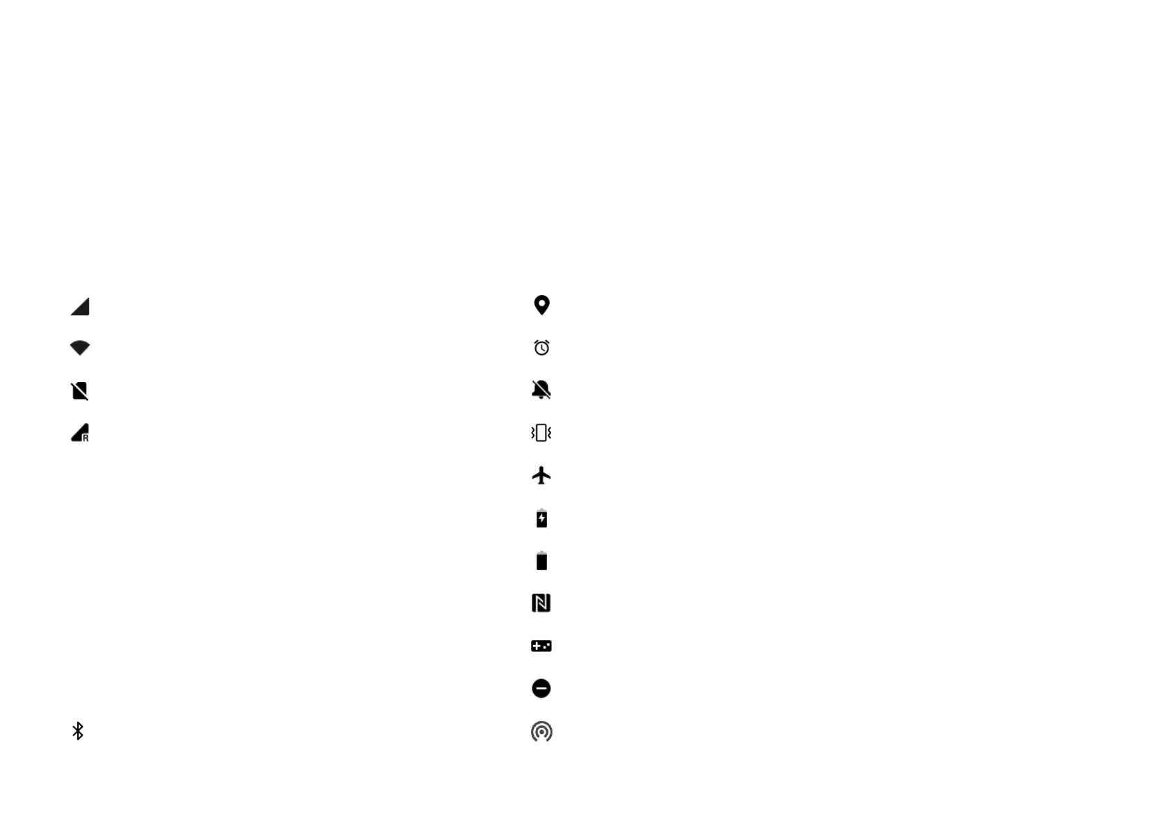 Status icons are displayed on the status bar at the top of the screen. The icons listed in the table