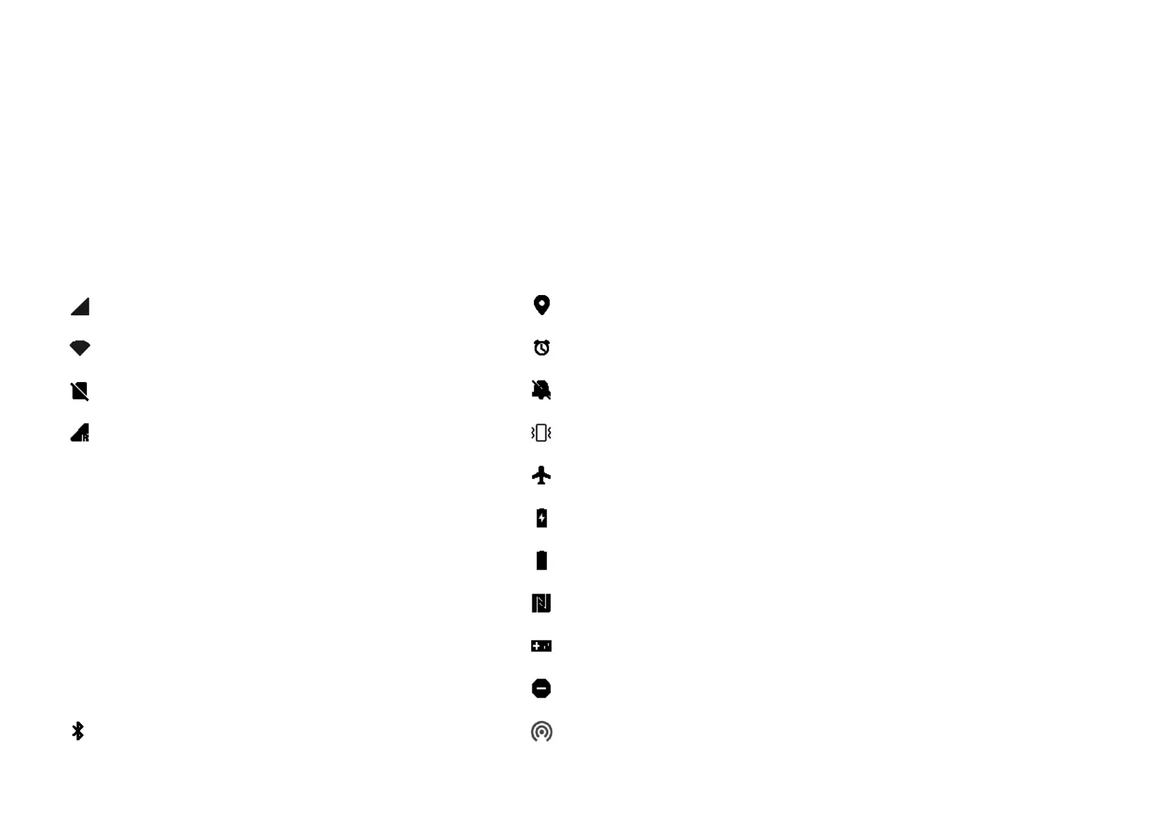 Status icons are displayed on the status bar at the top of the screen. The icons listed in the table