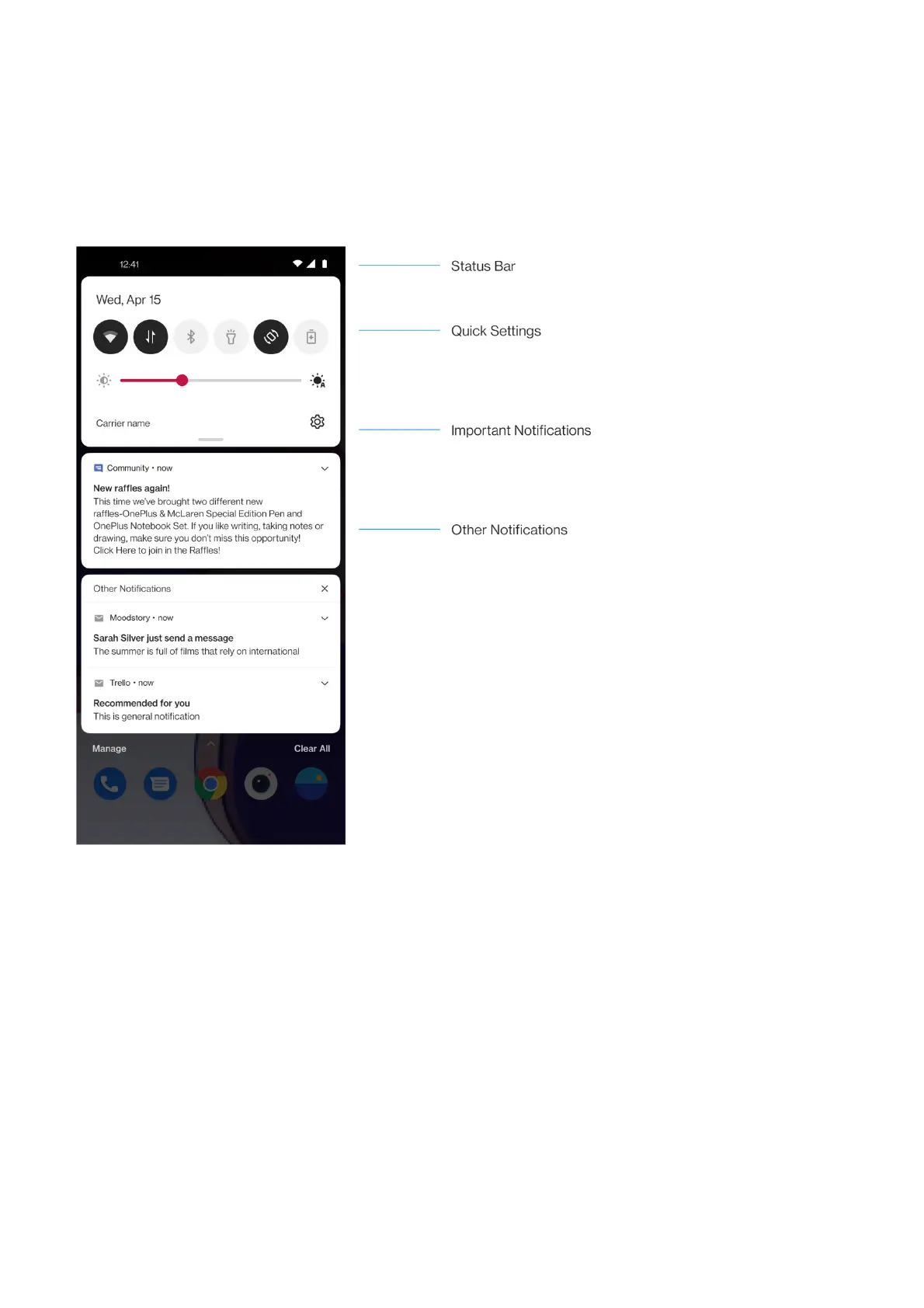 notification panel by swiping down from the top of the application
