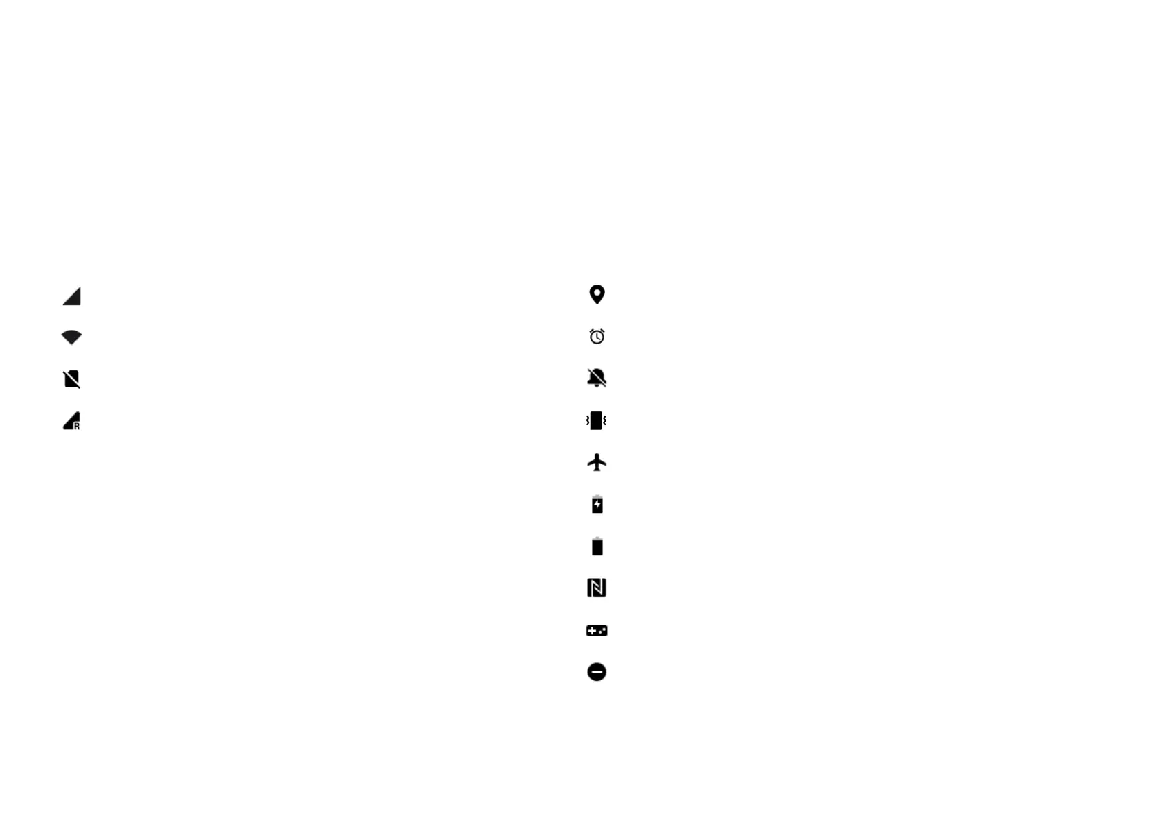 Status icons are displayed on the status bar at the top of the screen. The icons listed in the table