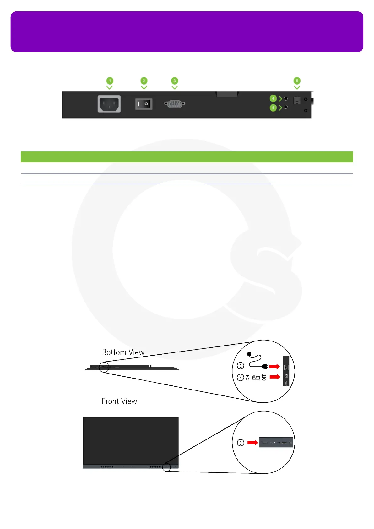 1. Connect the power cable to the power inlet present at the bottom of your OneScreen