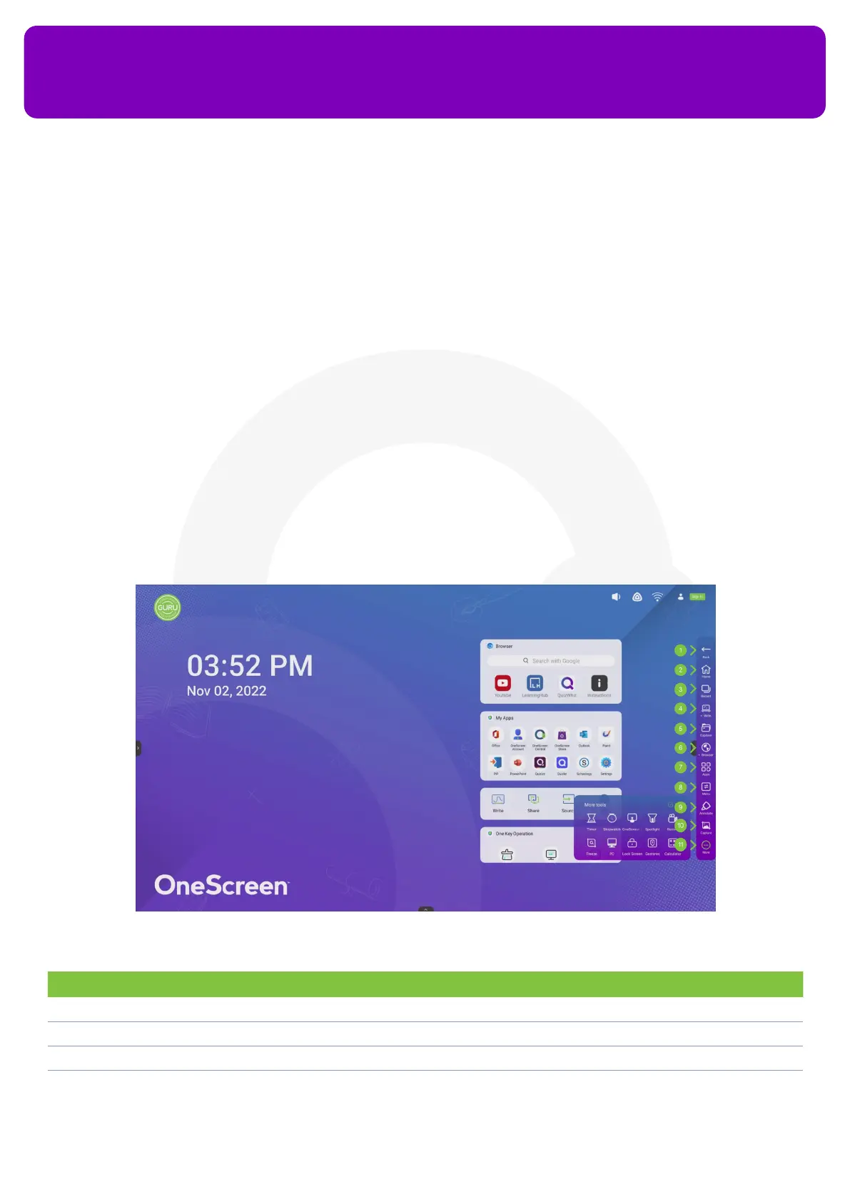 3. Recent To access all the applications running in the background of your OneScreen