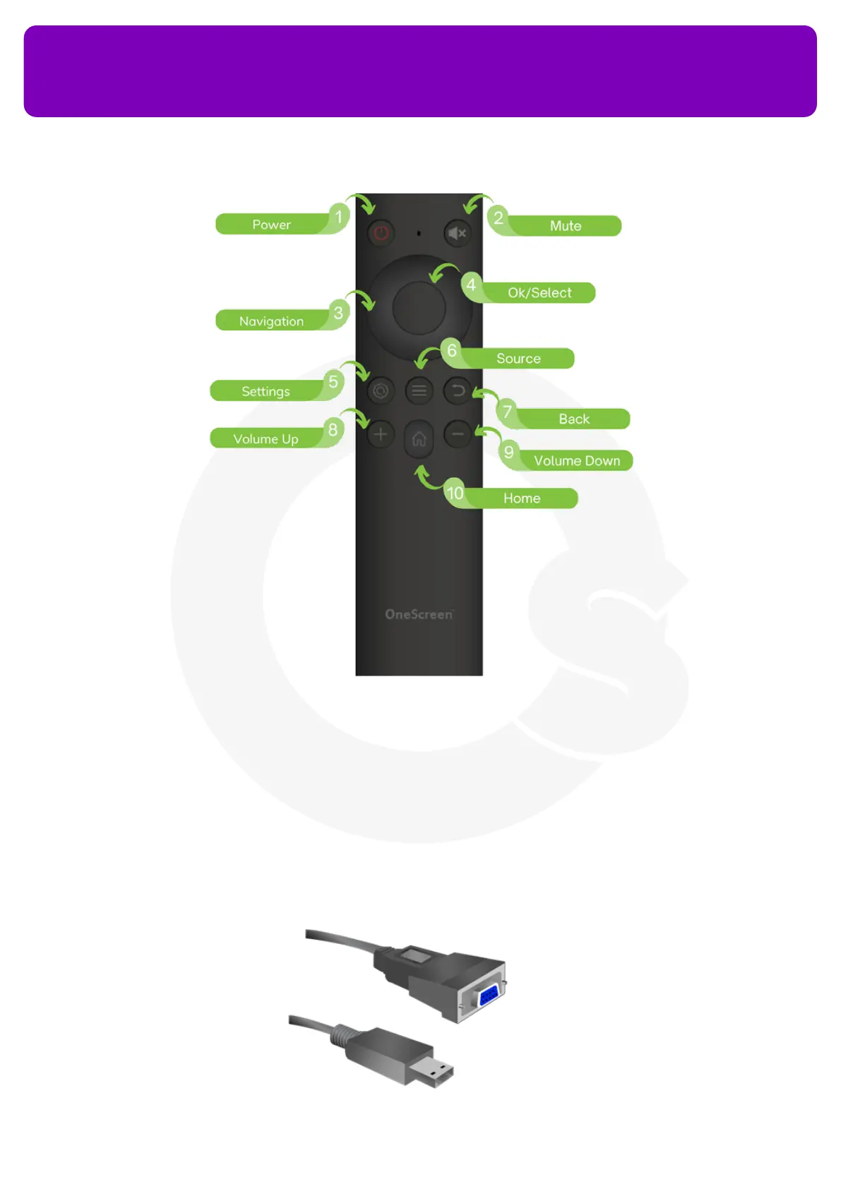 Use a Male USB to Female RS-232 cable to connect between control processor (computer) to the OneScreen