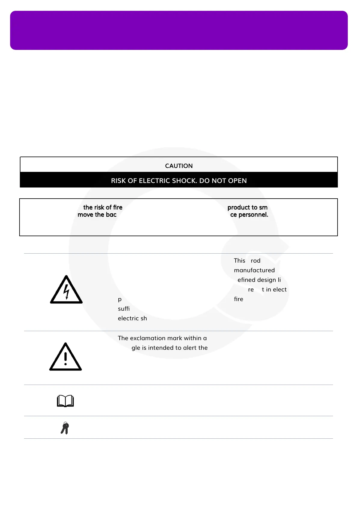 RISK OF ELECTRIC SHOCK. DO NOT OPEN