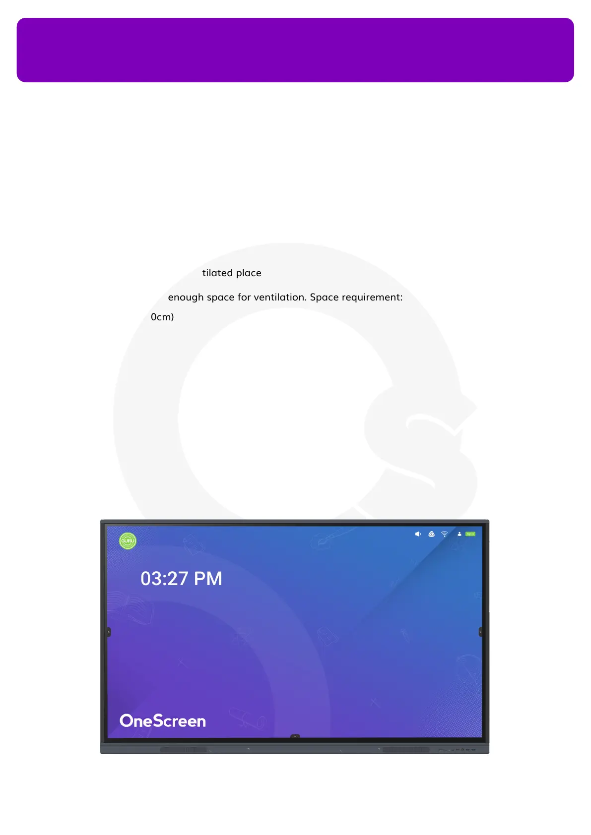 • Ensure that the unit has enough space for ventilation. Space requirement: left, right and back >3.93”