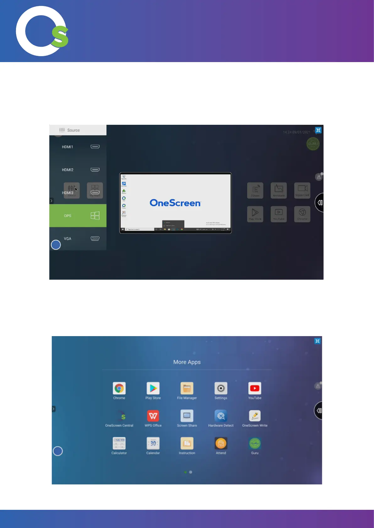 “My apps” lets you access the applications that have been installed on the OneScreen unit.
