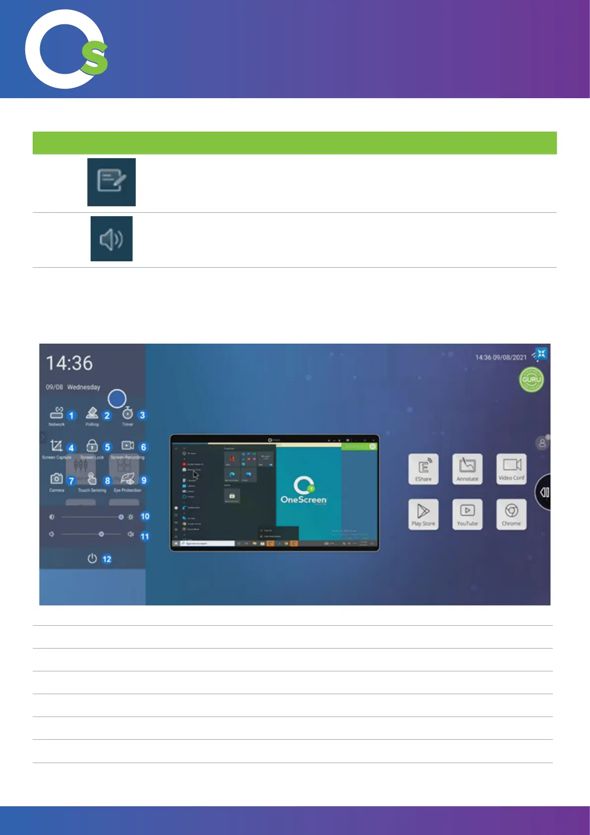 This button allows you to change the volume of the OneScreen unit.