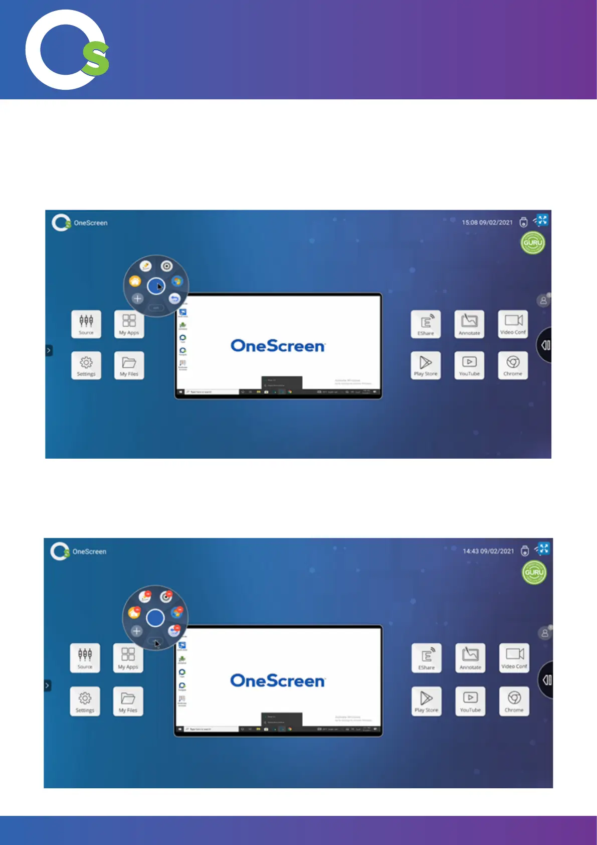 You can use the oating toolbar to open various tools and applications. Drag the toolbar from the side of the screen