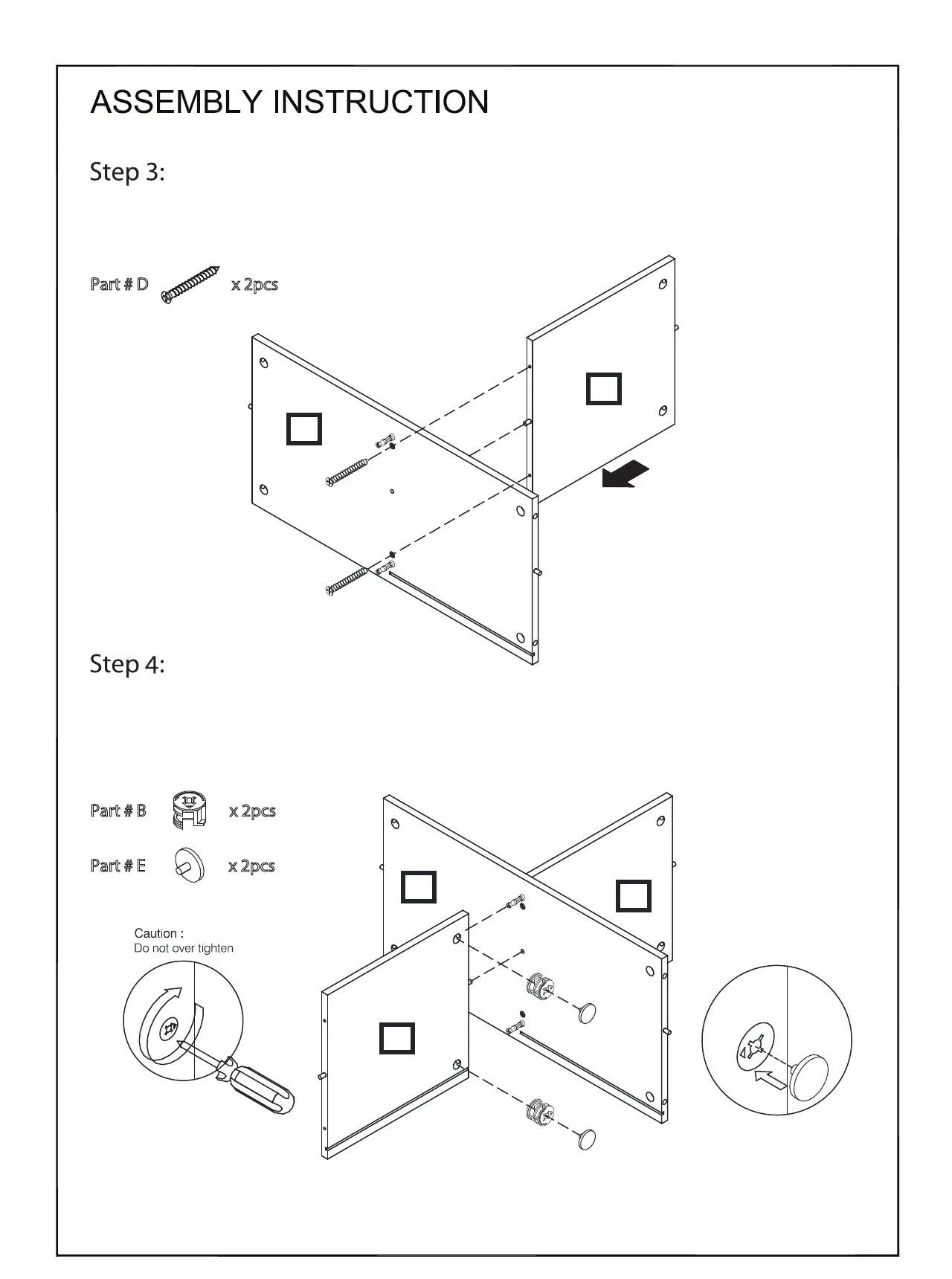 Use two CSK Screws (D) to attach the Shelf Panel (5) and Center Panel Top (6). Make sure that the grooves