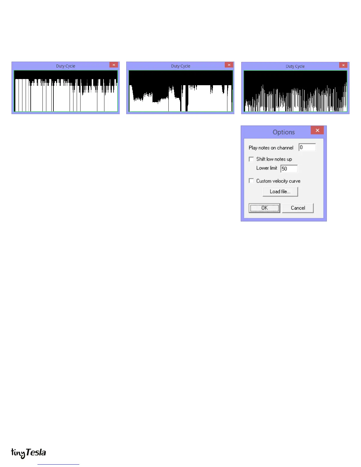 the playback duty cycles for MIDI velocity 0 to 127. This is useful for applications such as
