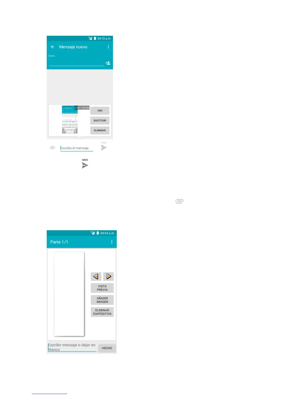Enelmensajemultimediaqueestáredactando,toque >Presentaciónparaañadir