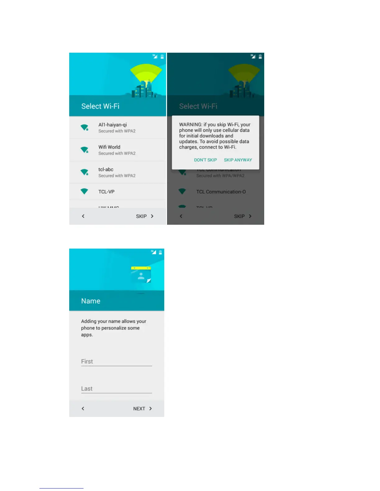 l Name–Enteryournametopersonalizesomeapps,ortouchNEXTtoskiptonextscreen.