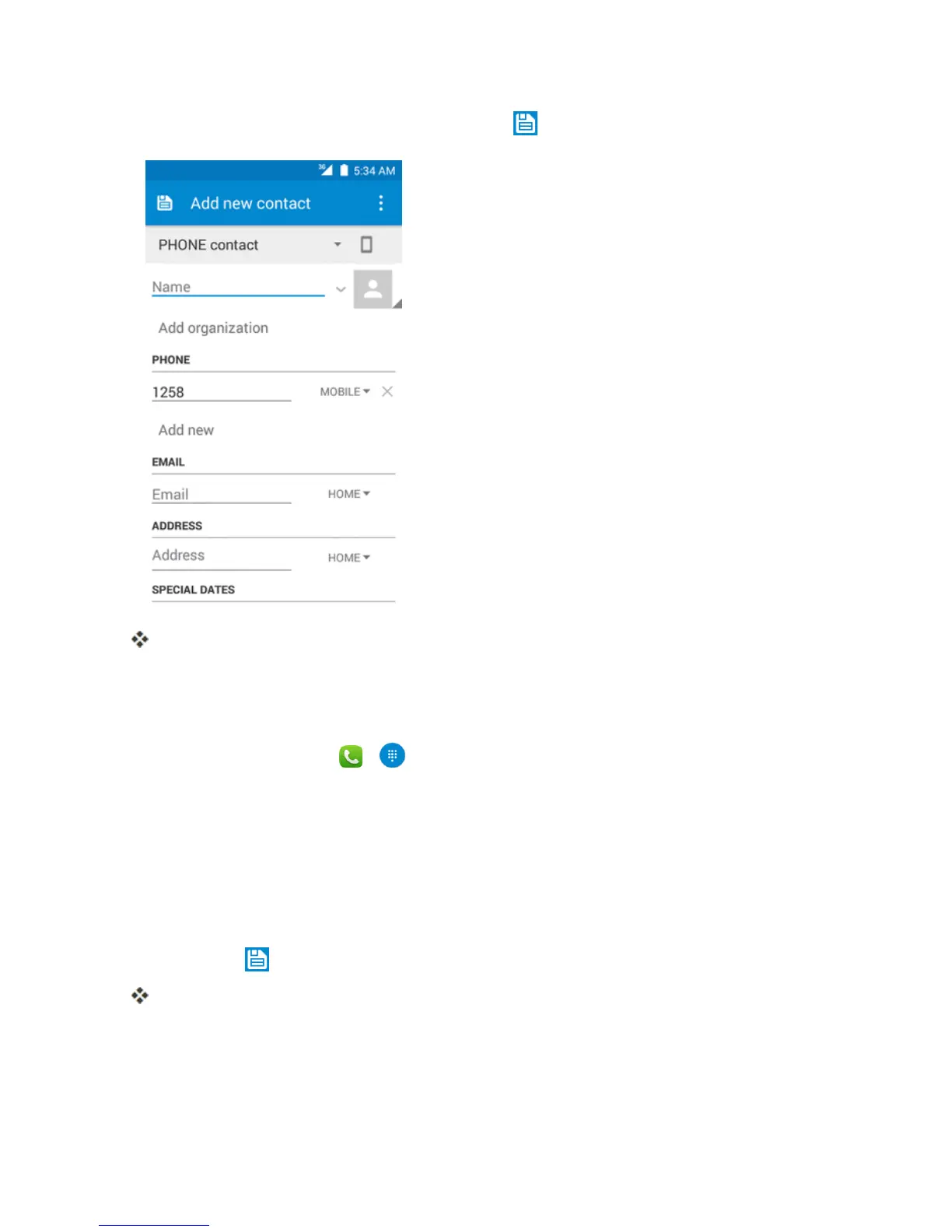 YoucansaveaphonenumbertoContactsdirectlyfromthephonedialpad.