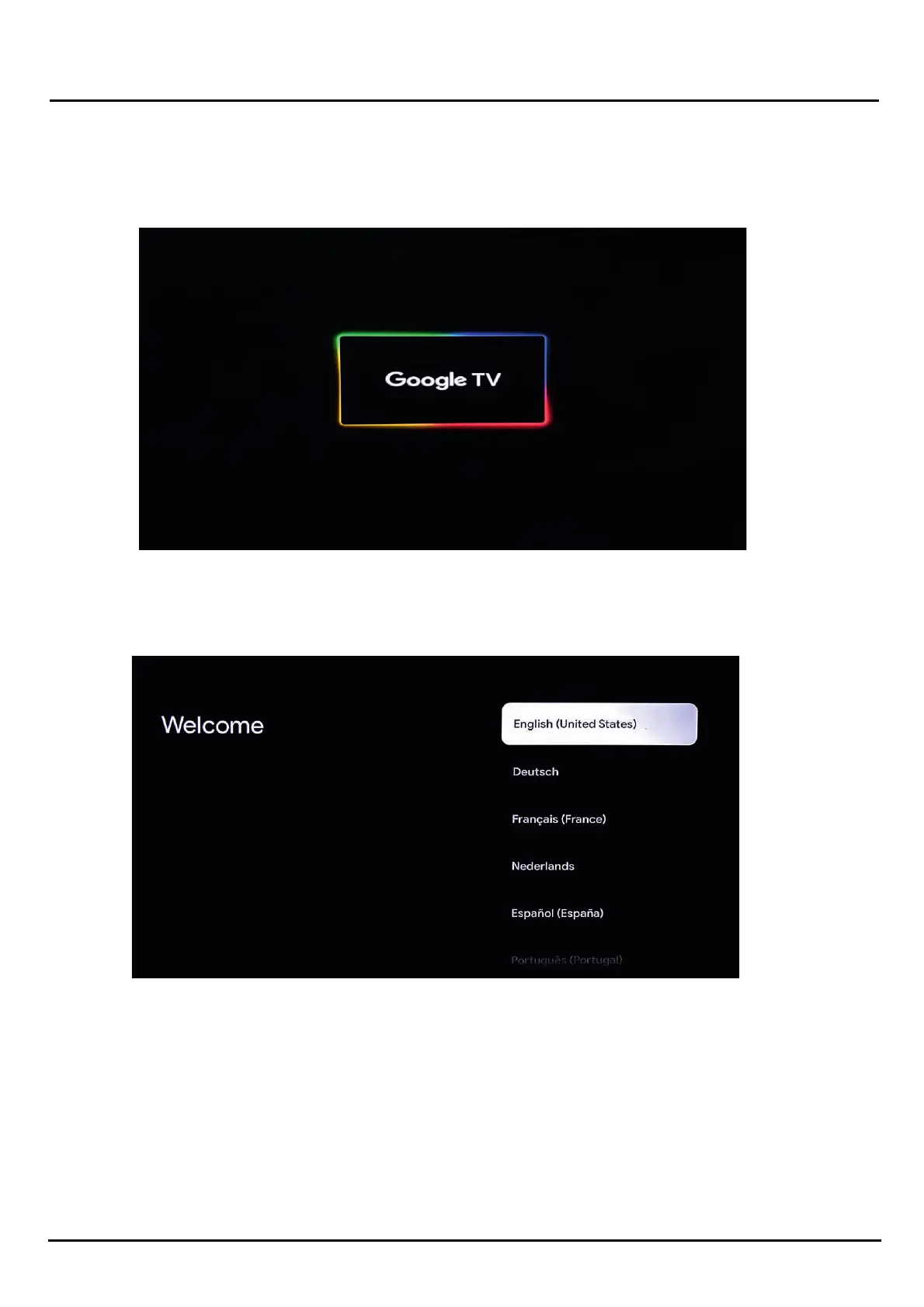 When you switch on the TV for the first me, the First Time Setup menu will be displayed on the screen, as illustrated below.