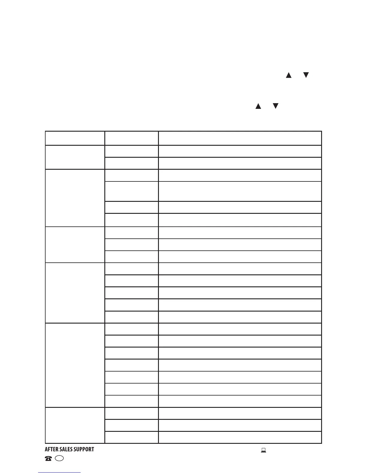 Main menu Submenu Description