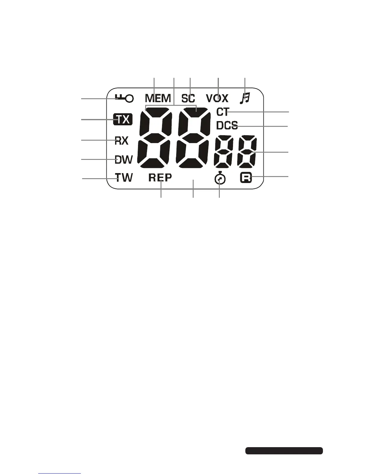C RX - is illuminated when the radio is in RECEIVE mode