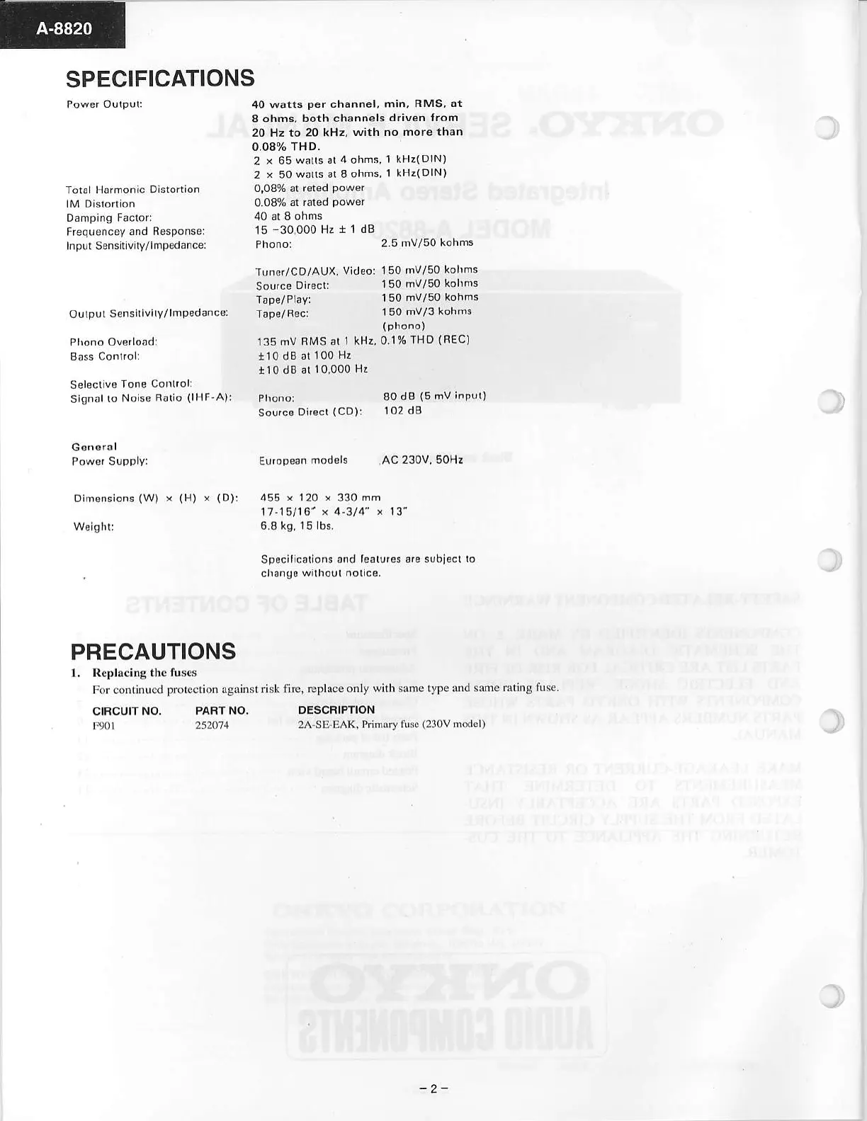 Onkio A-8820 - Page 2