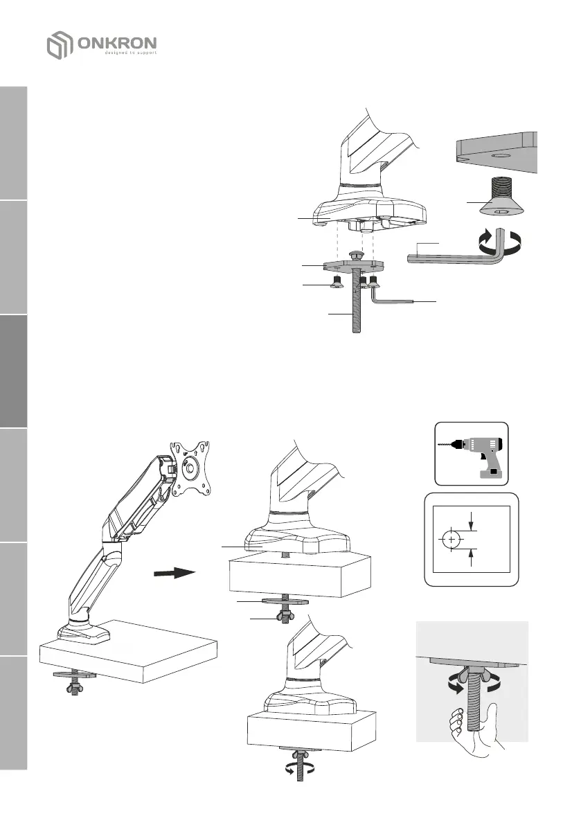 џ Installez le support à travers le trou du comptoir et fixez-le sur le