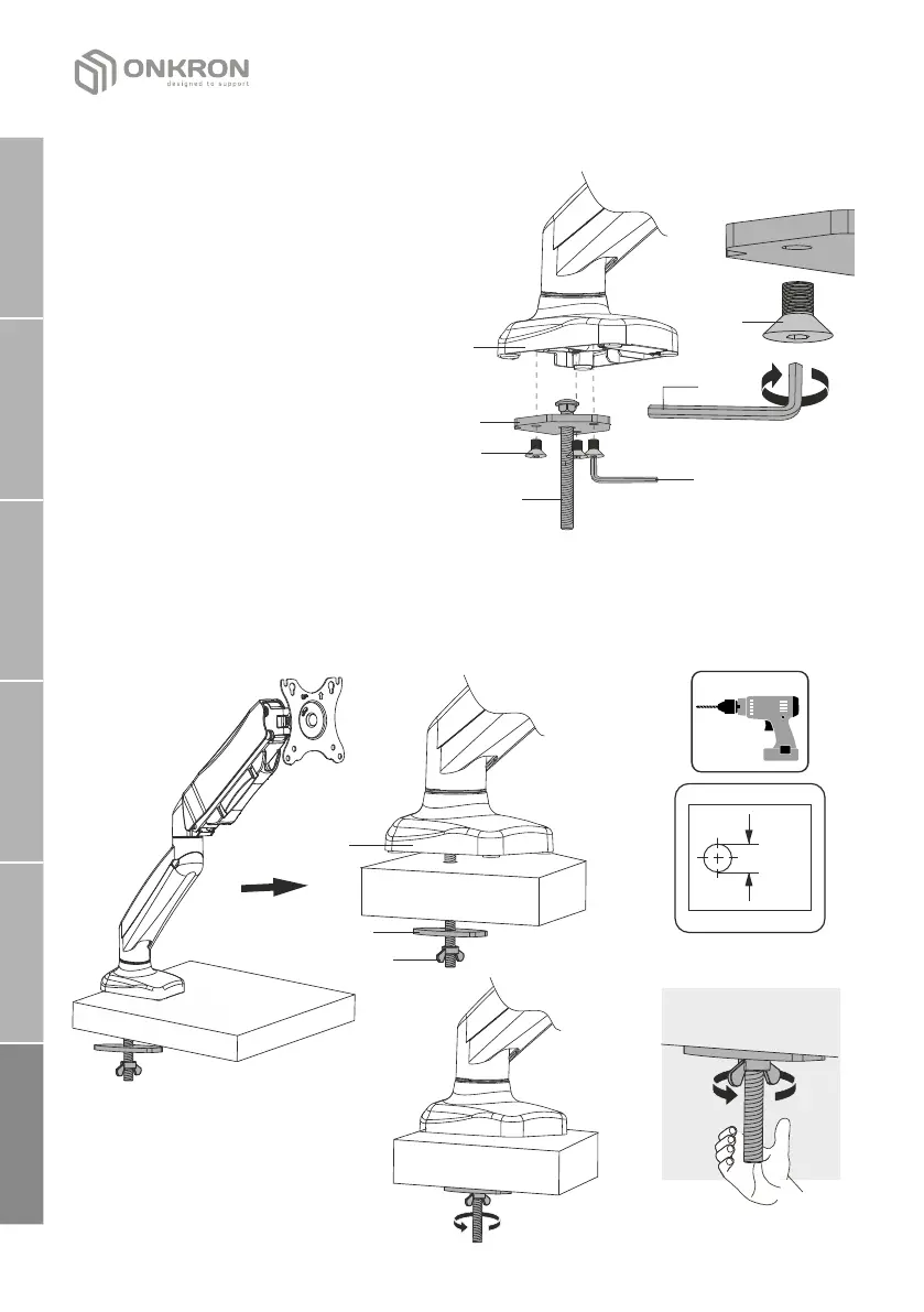 џ Установите кронштейн сквозь отверстие в столешнице и закрепите