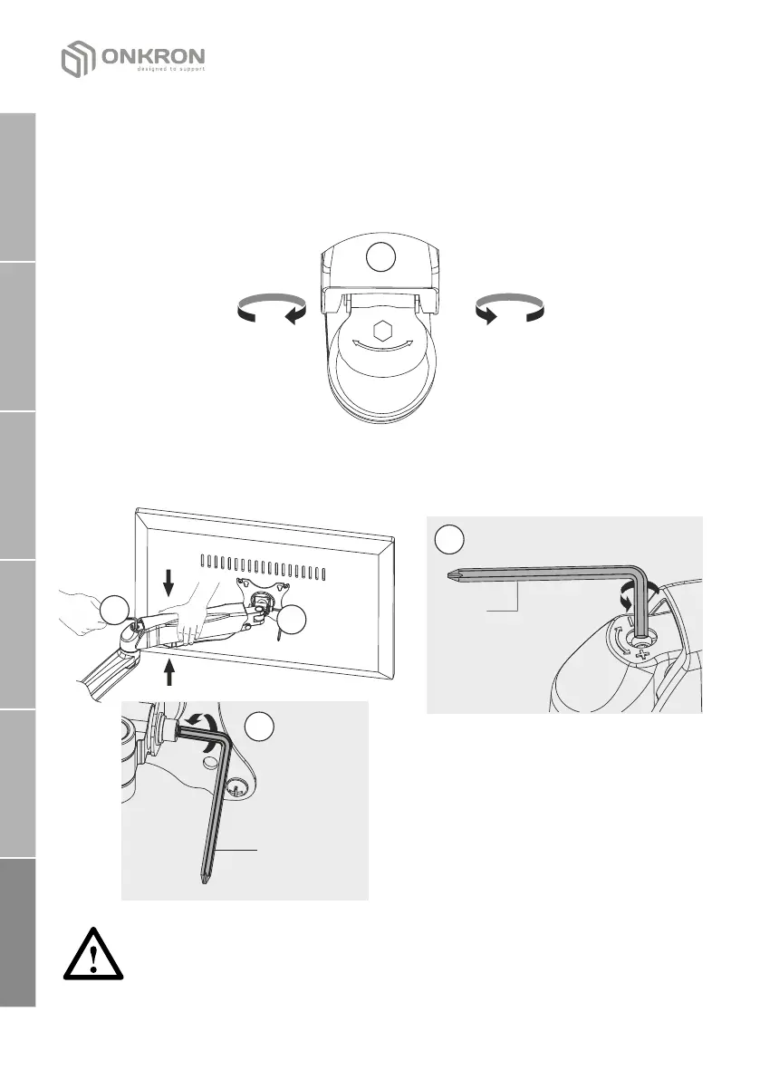 вращая ключ против часовой стрелки в сторону (+) для тяжелого монитора,