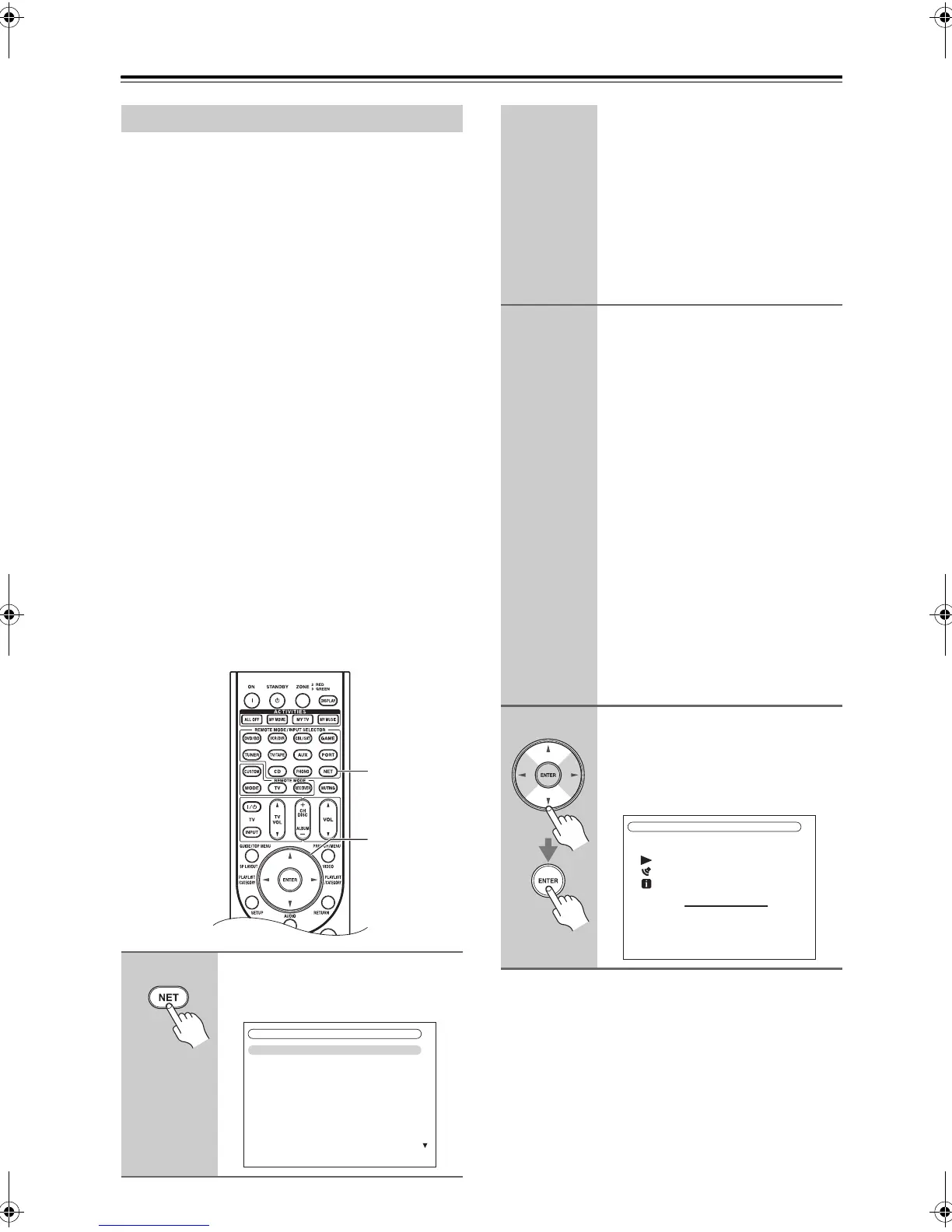 on the Internet Radio screen, and then press [ENTER] to