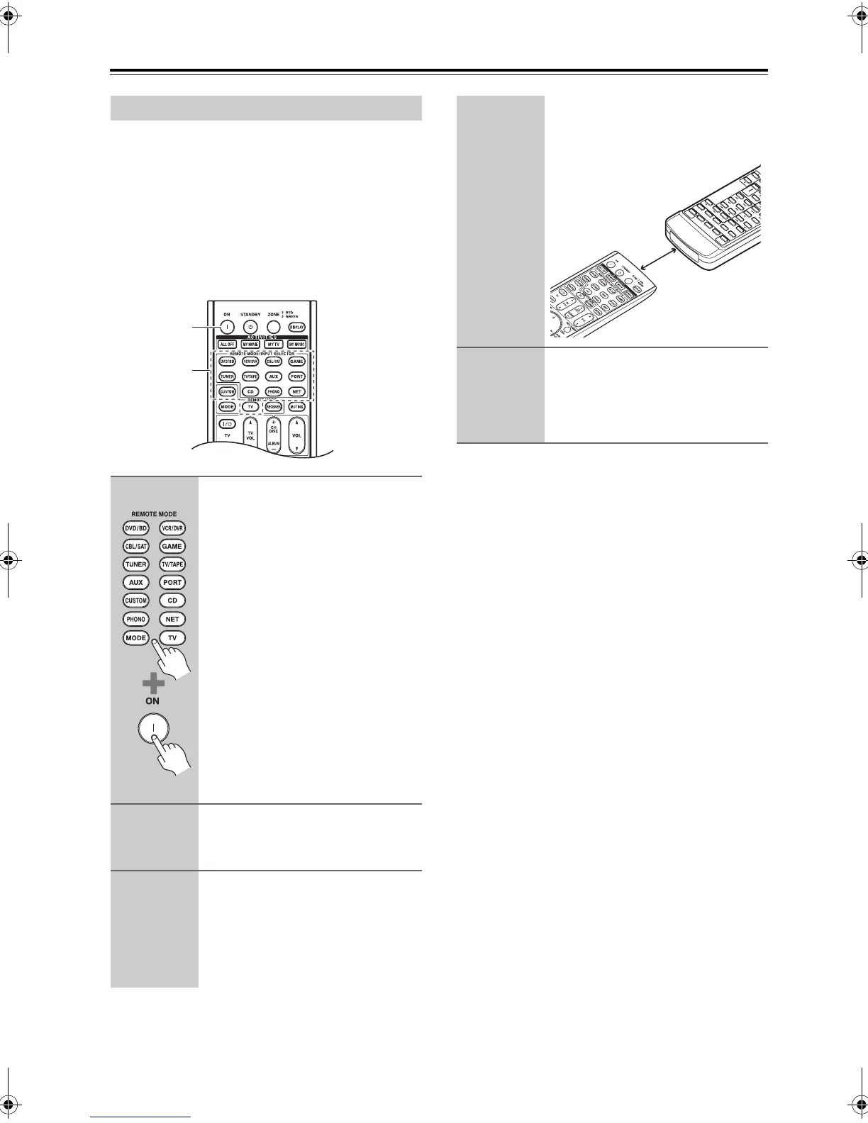 1. While holding down the REMOTE MODE button