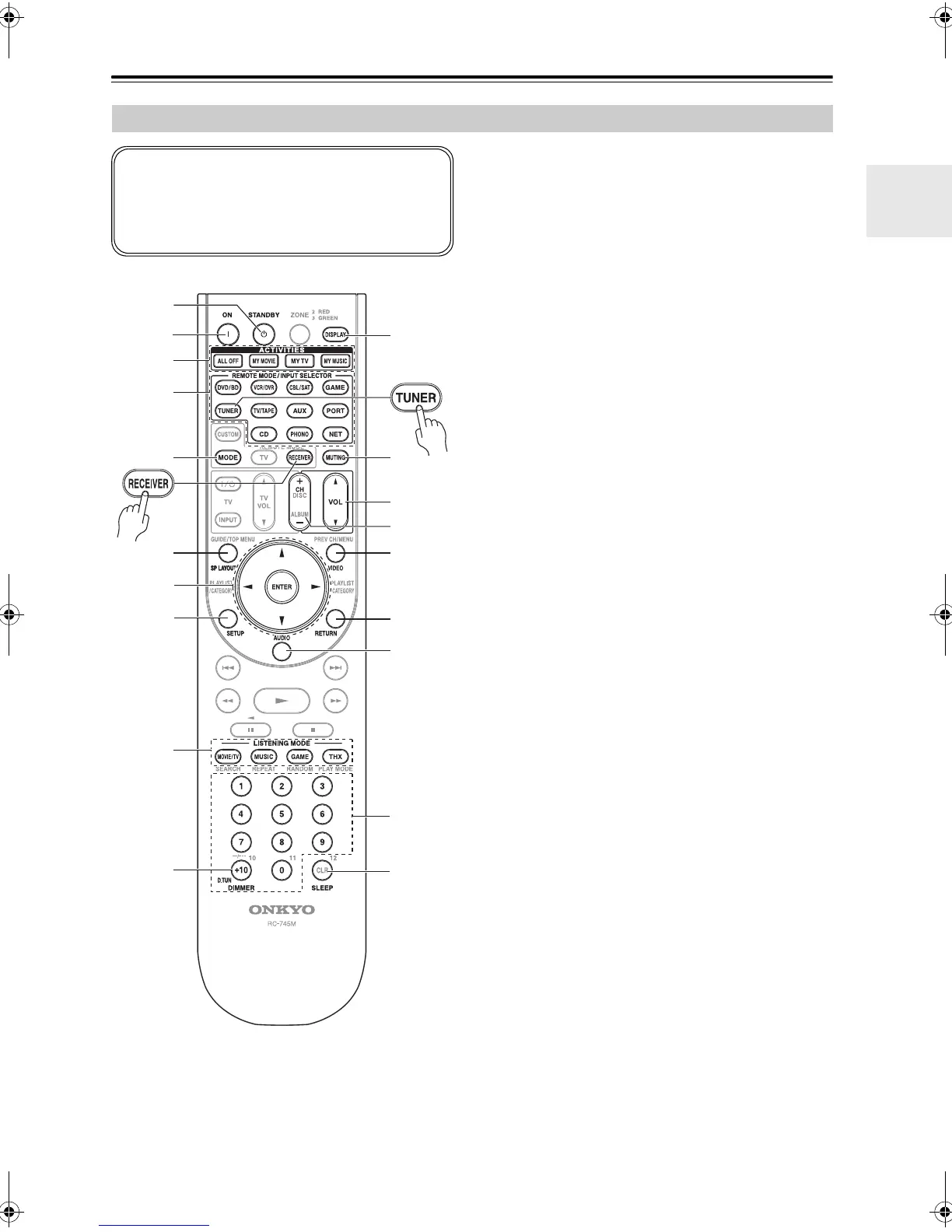 To control the AV receiver, press the [RECEIVER]