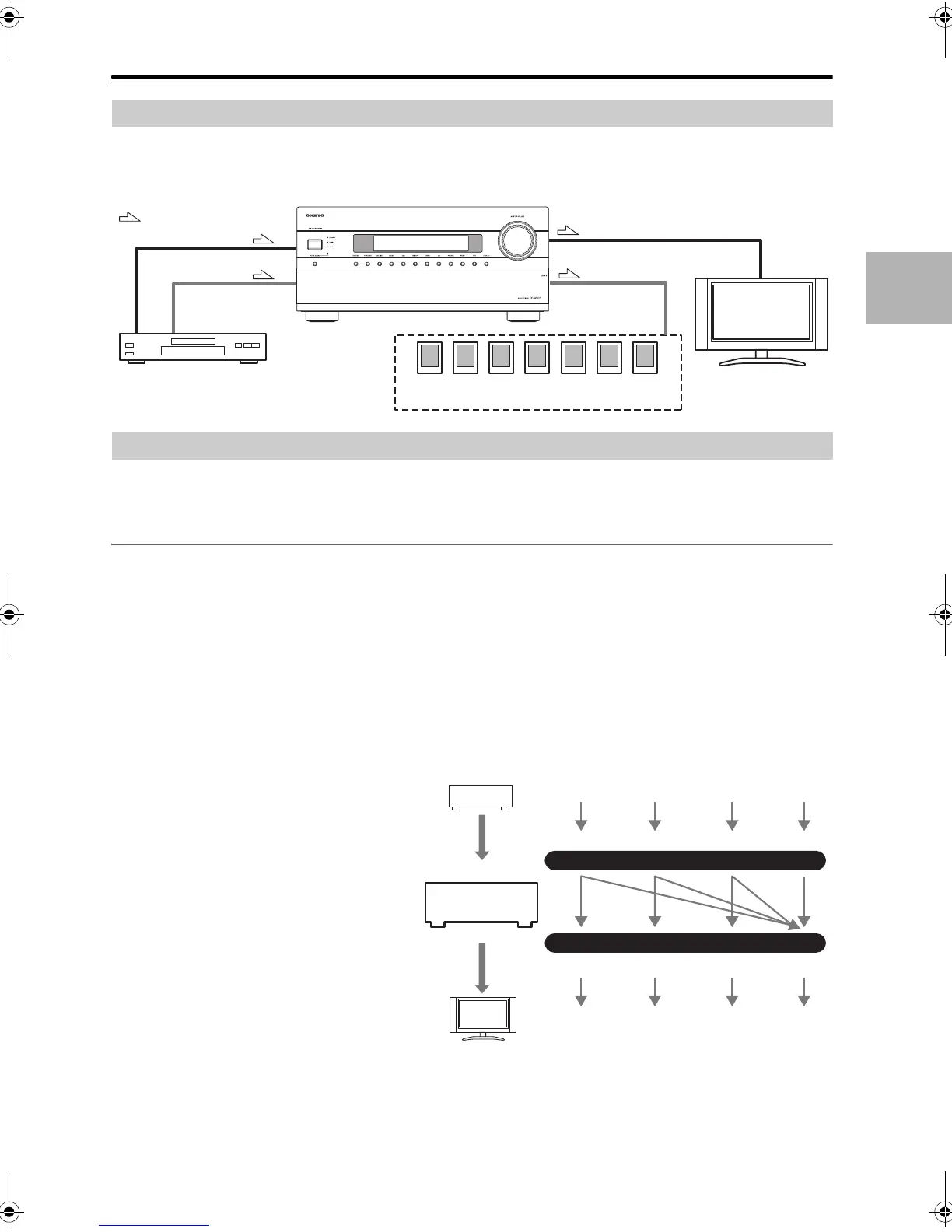 By connecting both the audio and video outputs of your DVD/BD player and other AV components to the AV receiver,
