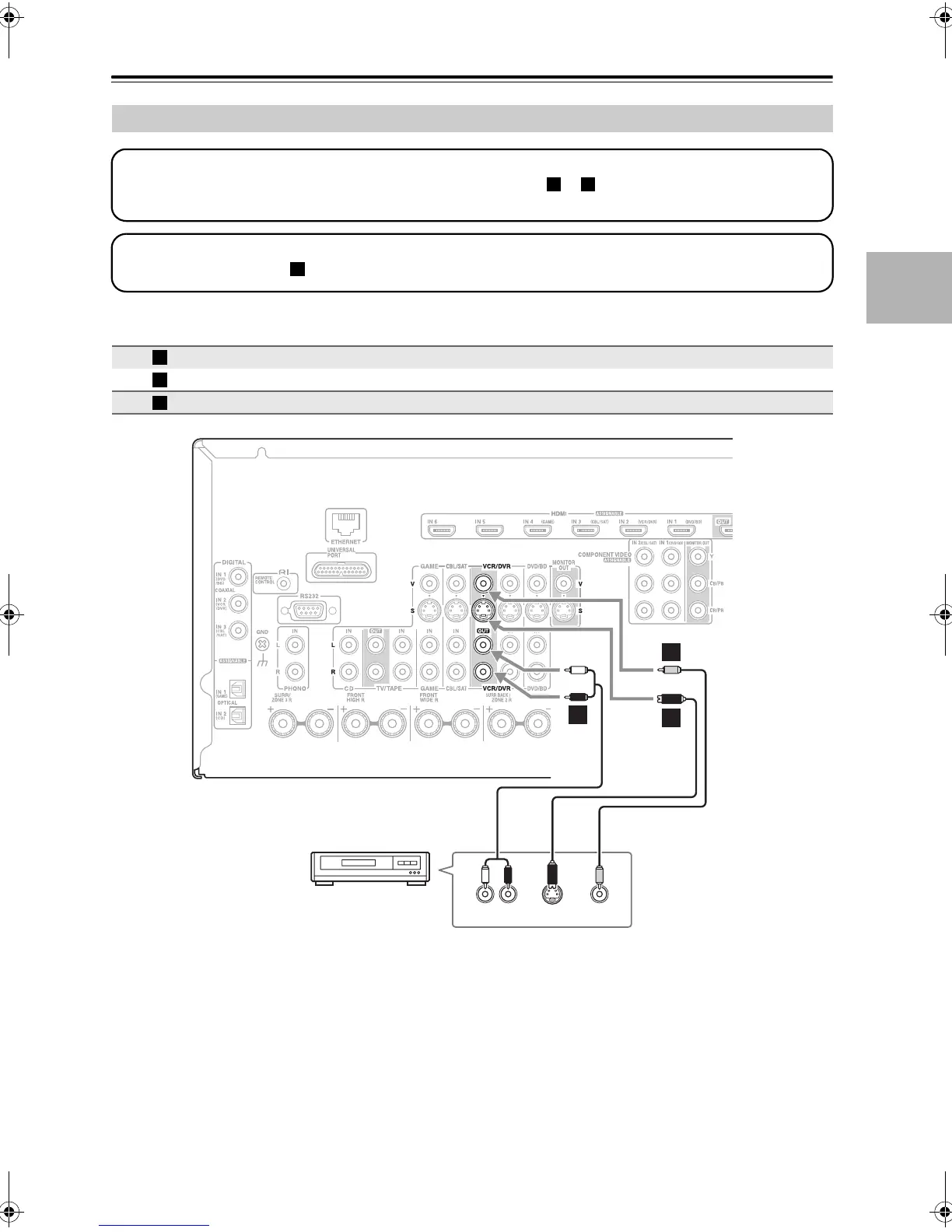 video source to be recorded must be connected to the AV receiver via the same type of connection.