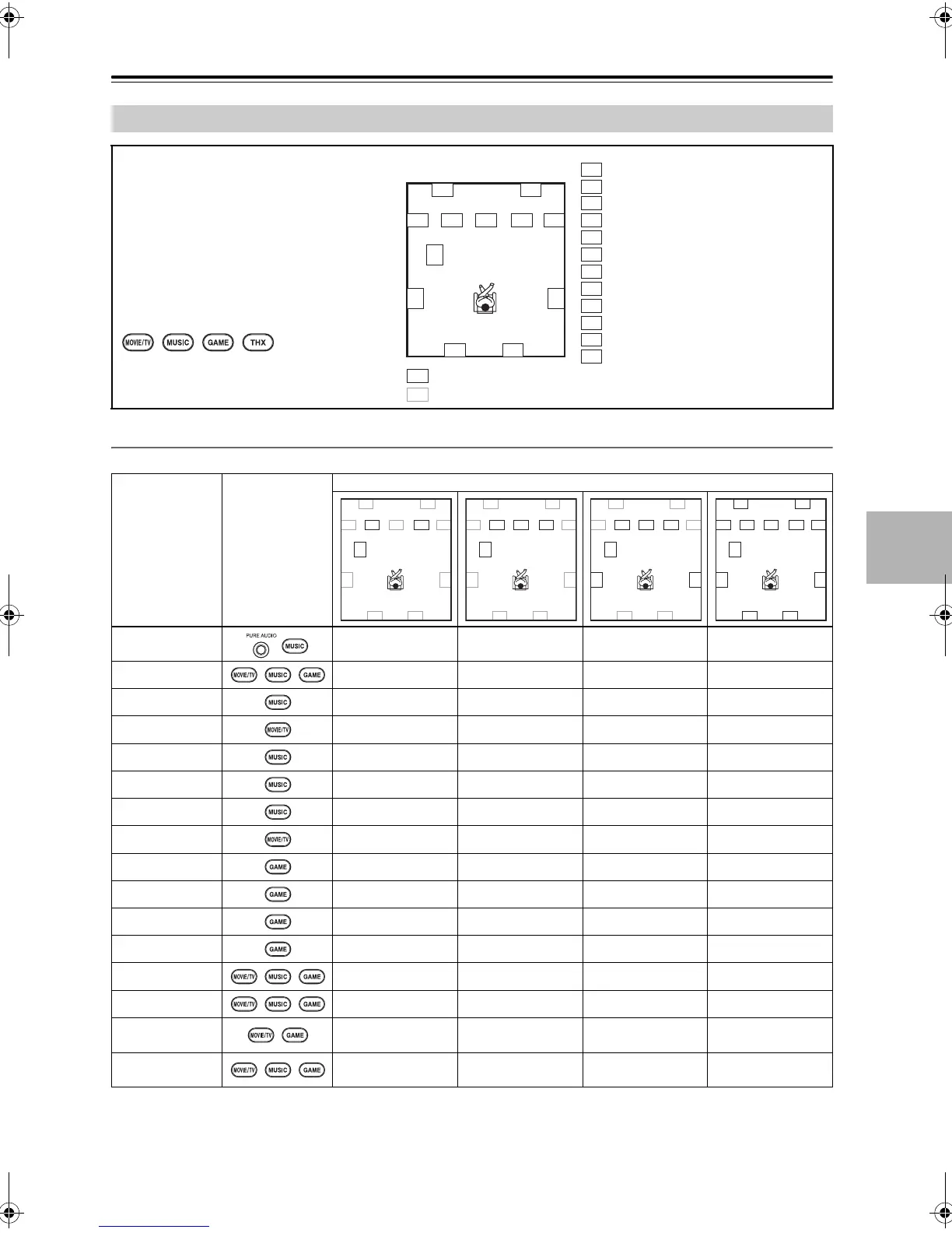 Listening Modes Available for Each Source Format
