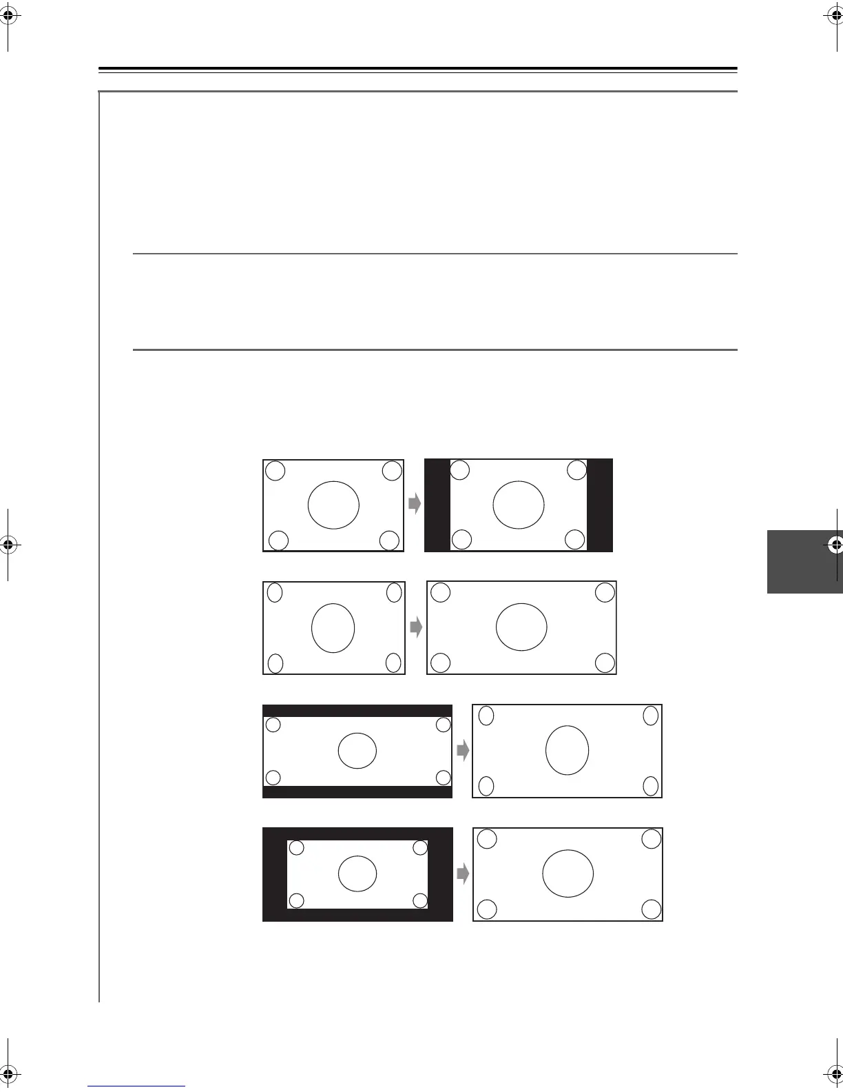 cally selects the Normal, Full, or Zoom mode. For the monitor output setting, see