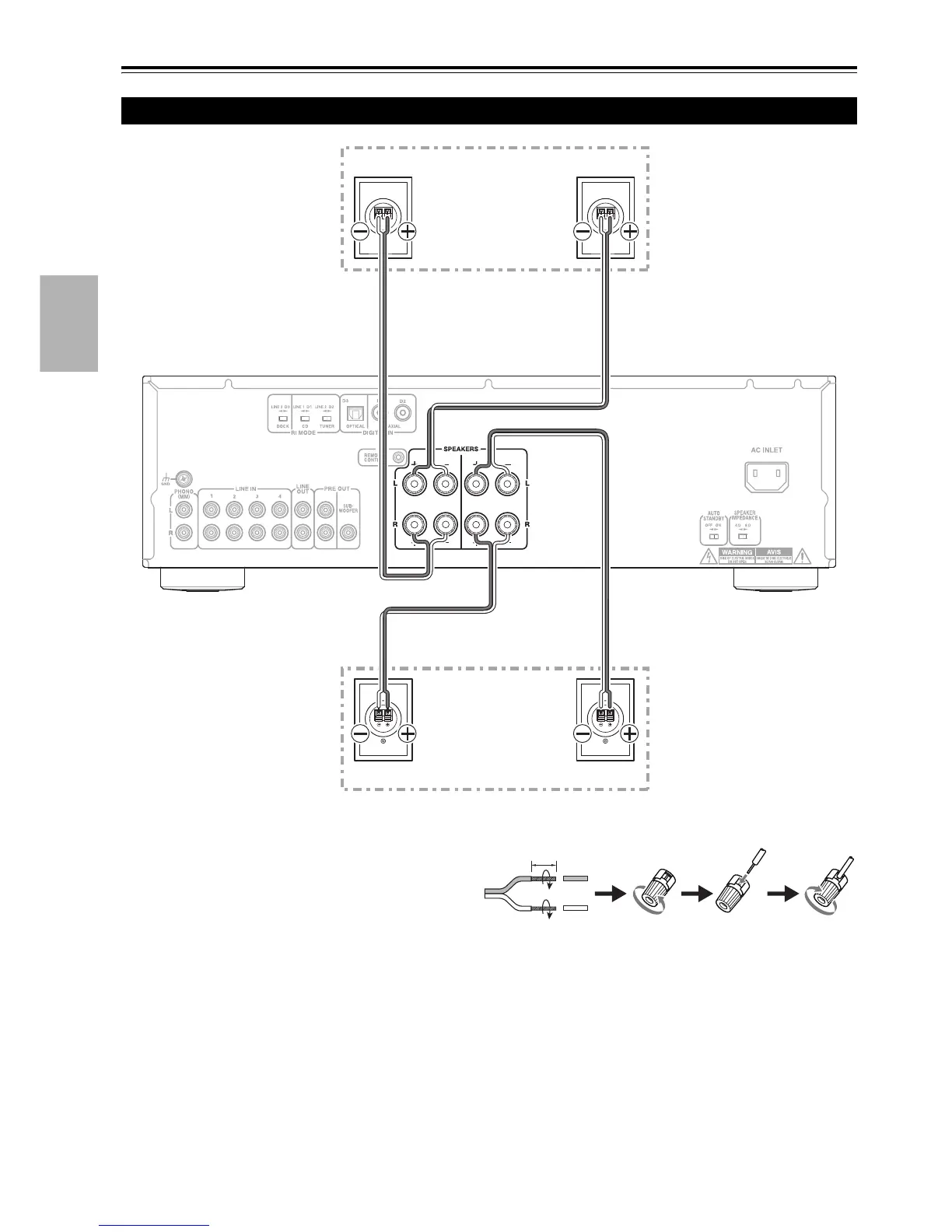 • Do not insert the speaker code directly into the center hole of the speaker terminal.
