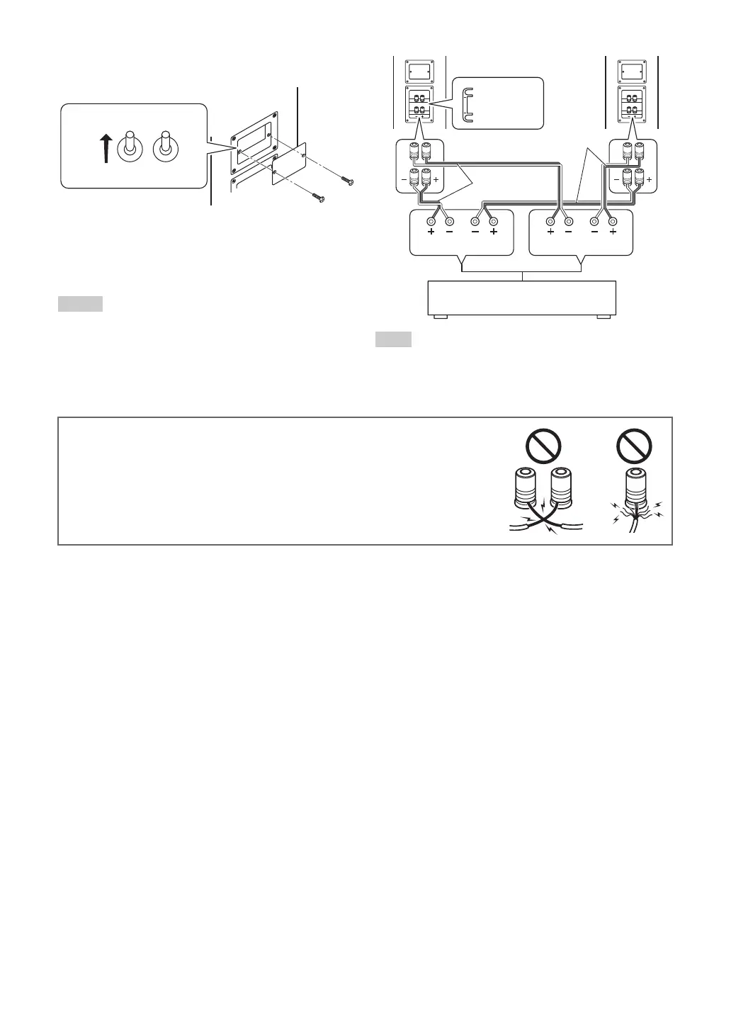 ・Make sure that the positive (+) and negative (-) wires or R and L wires are not touching