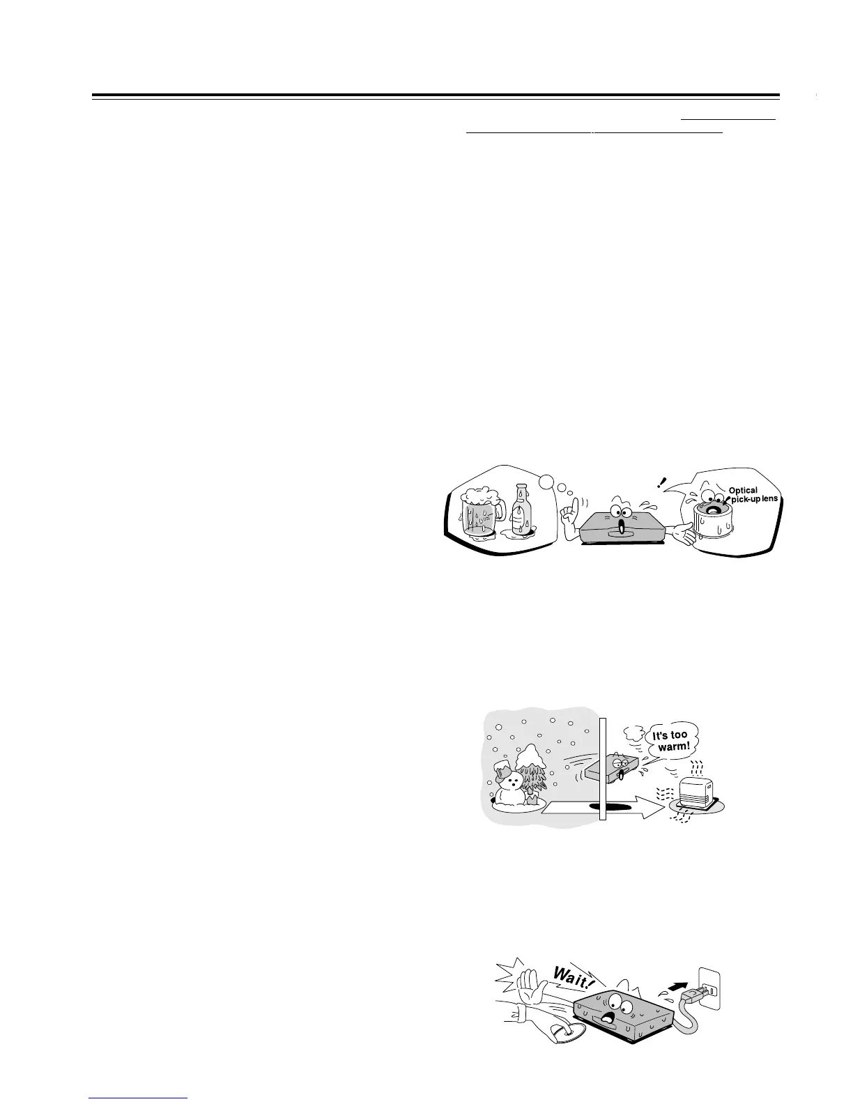 • Do not use the DVD Receiver when moisture condensation may occur.