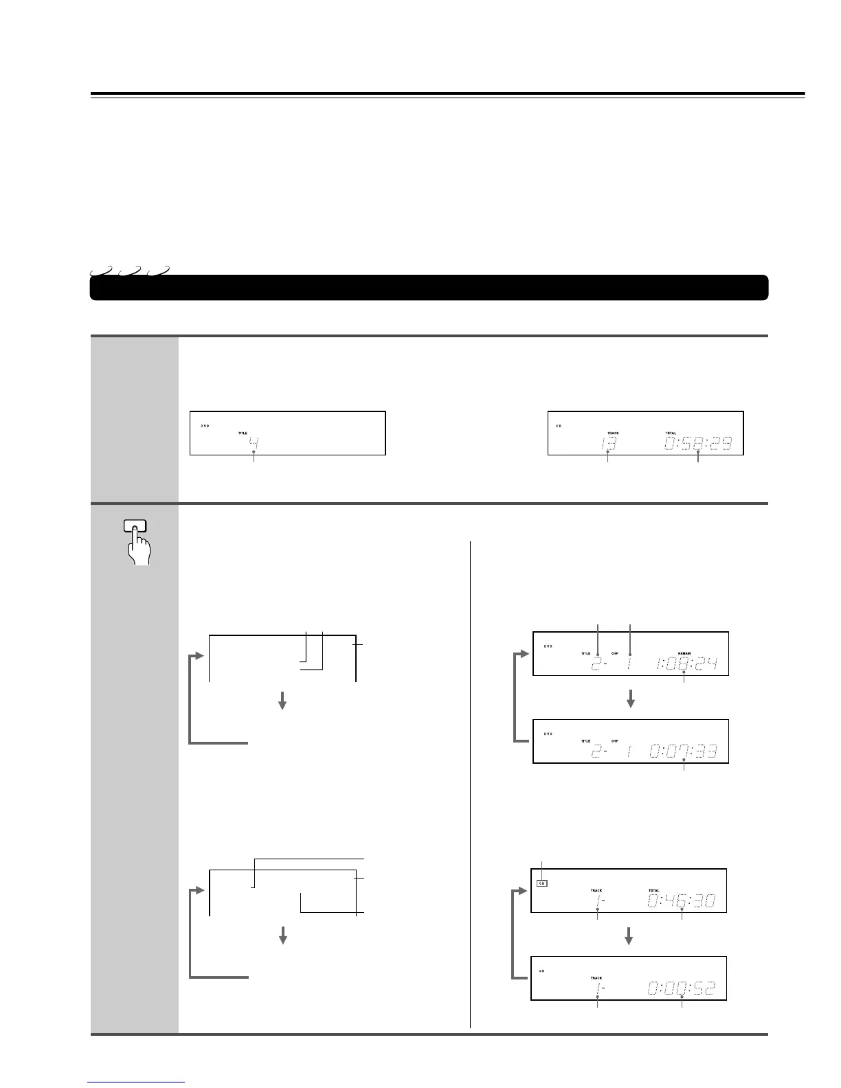 The following information appears in the DVD Receiver’s display for about five seconds.