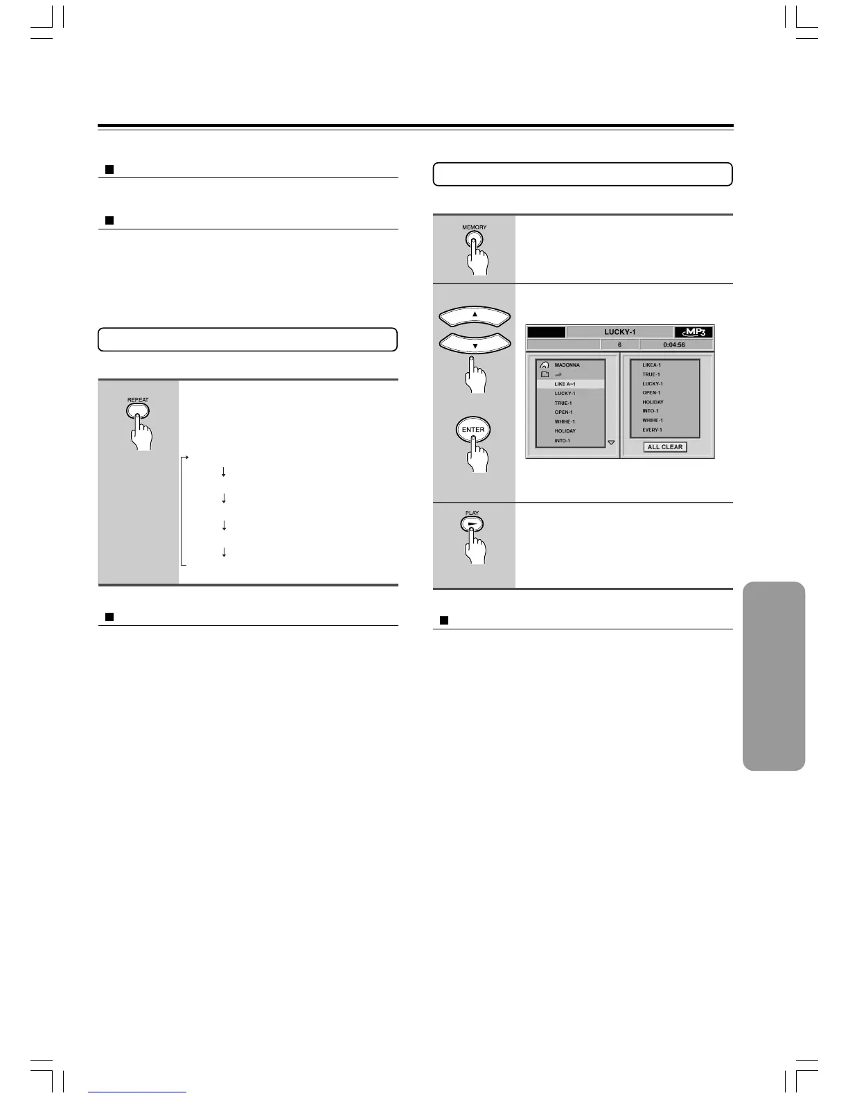 • You cannot use repeat playback for files programmed into memory.