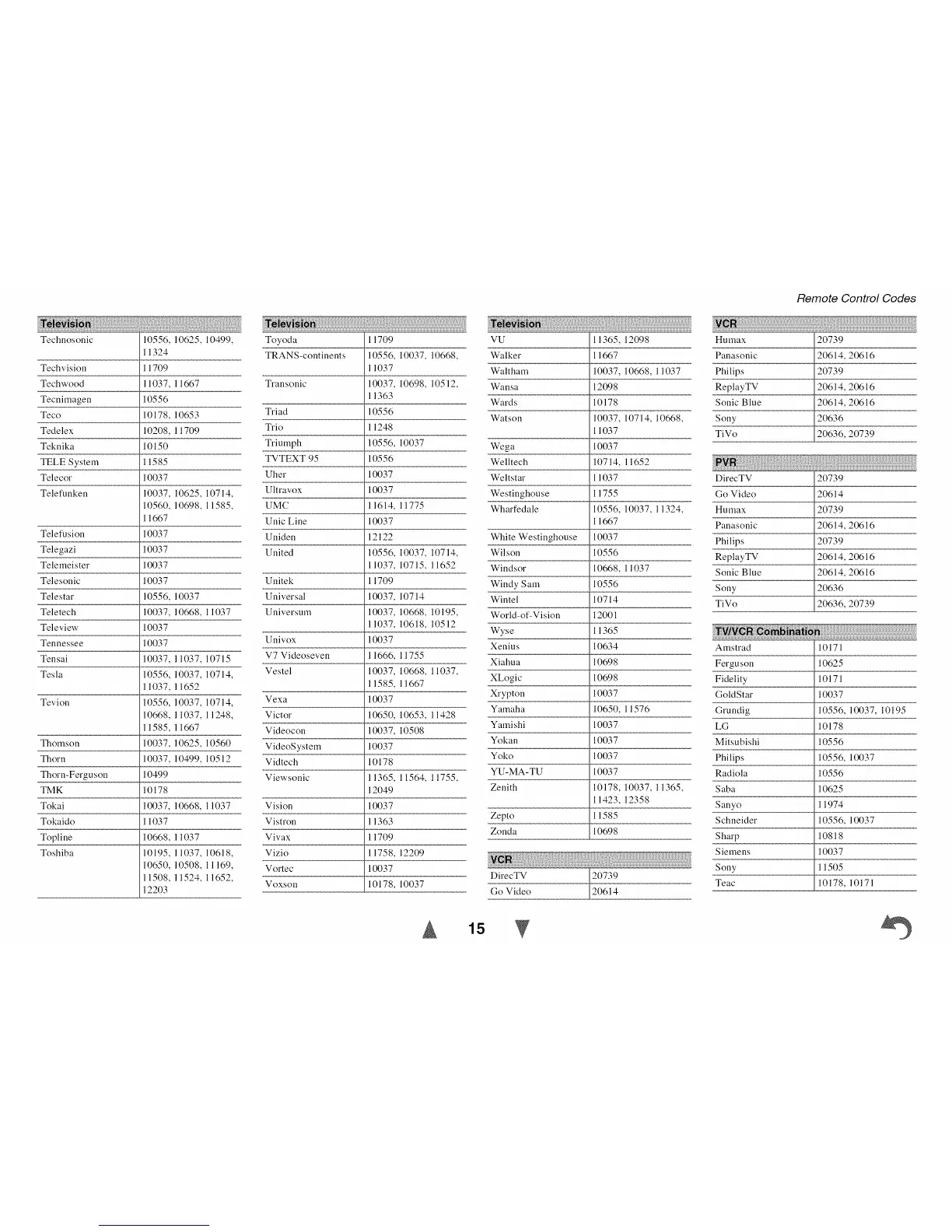 Remote Control Codes