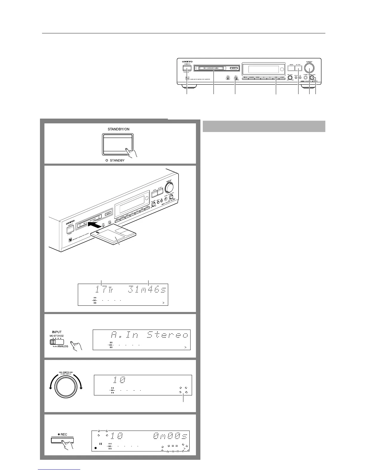 The MD recorder is now in recording standby mode.